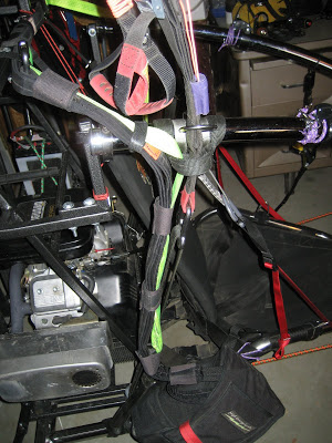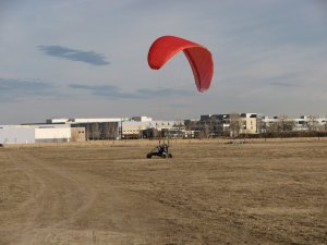 Thumper High Altitude TestsI went out to El Mirage and the Flying “J” Ranch this last weekend tofly the Thumper. I wanted to launch and land the machine, maybe ahundred times, and really get a feel for it. I wanted to do some highaltitude tests, to see how high it would go and what the climb rateswould be at different altitudes. I got there Friday afternoon, and pulled the Thumper out of my shedand gave the key a try. BrBrBRrBrBr, it sounded like a jackhammer as Irealized that I should have removed the positive battery lead before Ileft last time. I pulled my Toyota over near the Thumper and gave herthe breath of life. I let the Thumper run for close to an hour,letting her charge the battery up so I had a bit of reserve. The greatthing about the Briggs & Stratton motor is that this thing just runs!You simply start it, and it just loves to run. I changed the throttlea few times to 2000 and 3000 RPM, and sometimes I would run it rightup to full (at the pitch I had the IvoProp at, it topped out at around3400 RPM – should have been around 3800), then let her rest at around1200 idling. Finally, started setting up for a flight. Wrong! Once I got in theair, I could see why the Quicksilver Ultralight pilot looked so amused- it was punchy! On the ground, it was maybe 0-4 mph, seemingly niceconditions, but once in the air it was a different story. I did a fewgo-arounds and decided that it was a bit much for me and landeduneventfully. I spent the rest of the afternoon installing the FootSteering, a Reserve Parachute, more velcro for the instruments,getting some more gas and generally tightening everything andpreparing for the evening flight. At just before sunset, I launched again, and enjoyed maybe 30 touch &go’s before it got so dark I was squinting to see. I was flying theDudek Synthesis 34 glider, and it worked beautifully with all thatThumper weight (220lbs) dangling from the lines. I trimmed this reflexglider full slow for this flight, and it inflated perfectly everytime(5 inflations) with the A-Assists and was still fast in the air.Looking at the risers, I saw that full slow is actually a bit slowerthan trim speed, so I set the trimmers at 0 (there’s actually numberson the trimmer) to put the glider at true neutral for the morning flight.Jerry Frost and Pierre Beney arrived this evening, and we spent a goodbit of time ‘Hangar Flying’ around the campfire, watching the moon setalong with that planet, really spectacular!The next morning, I warmed the Thumper up for flight. With the twistof the key, she stirred to life and seemed to be content. I let herrun for a good half hour at idle, something I would never do to any ofmy two-strokes (they would coke-up and choke) while I prepared forgoing high. I used a Flytec Vario for climb rate, a Garmin GPSmap 76for better altitude, and my iPhone with the V-Cockpit app running, avery cool airplane instrument application that uses the internal GPSfor navigation. Only problem was the iPhone was so dim that is didn’tcome out in the pictures. You can see one shot of it in the photogallery on the Altitude screen, just one of the many functions thisapp has. Check out the main screen by clicking the small icon here toyour right. It’s a really cool Application, and I had fun playing withit as I flew. There’s even graphs of the entire flight showingaltutude, speed, climb rate, heading, but no way to save them! At about 8:30, I launched from the Flying “J” Ranch at approximately2850 feet and velcro strapped the throttle at full and sat back andrelaxed, took pictures, video, and wrote down info at each 1000 feetof altitude.