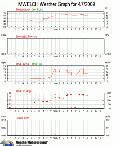 Marek and I kited for 15 minutes while the strong winds that had been blowing all afternoon finally died down. We chatted with an ex skydiver during set up and Marek was the first off at 6:45…I followed by a couple of minutes climbing to 1000 AGL. Marek stayed low and did some touch and goes.