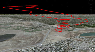 Tracy had come out and was getting ready to fly his RC Copter and while we chatted I caught a glimpse of Greg flying low in the depression to the South West. Now that I knew he had not been forced down I felt free to leave and did so.