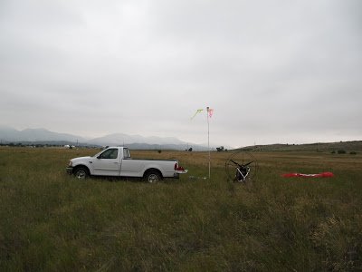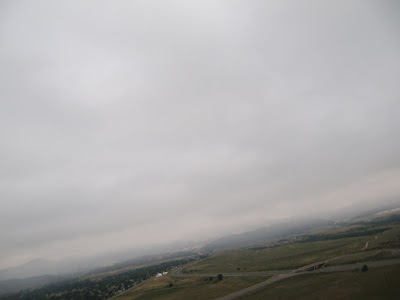 There were banks of fog in the area south of Red Rocks. I was wishing there was another pilot with me but the air seemed so still I had to go up and see what it was like. The launch was normal and for the first 30 minutes it was glass off. I went to 700 feet and started to lose site of the surface so I stayed there and kept a good eye on the ground. A couple of times the base lifted and them came back down…or maybe it was me but I was seeing the Denver skyline come in and out of the fog. The last 10 minutes the air started getting bumpy so I landed. As soon as I was down, I regretted it, There was a slight West breeze and with the thick overcast, I’m betting I could have flown past 10. But…It didn’t feel right flying in soup without back-up so i packed up and headed over to Chatfield. I spotted a couple of balloons through the fog and drove over to the port to see if I knew anyone. A couple of them had landed out so I drove over and assisted them in getting deflated.