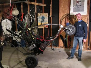 My take off must have looked pretty bad but I was grinning from ear to ear. It fell to the left and overshot…started to frontal…fell to the right…came back up and when I finally felt good about it…I added some throttle and did a proper run-out. The new Throttle set-up is much better. The Brake toggle is held in the 3rd and 4th finger leaving my index finger and pinkie to work the throttle. I’m sure the control issues will go away as I get used to the low hangpoint.