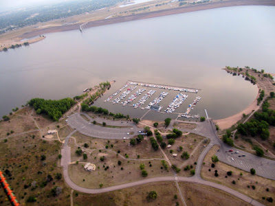 I set-up on the far North end in a patch of shallow weeds. There was a nice down hill grade and even if I had to Taxi into some tall stuff, I figured that I would be moving fast enough to plow right through. Marek got off first and I was right behind him. We both went north past the dam and I chased him west into the sun.