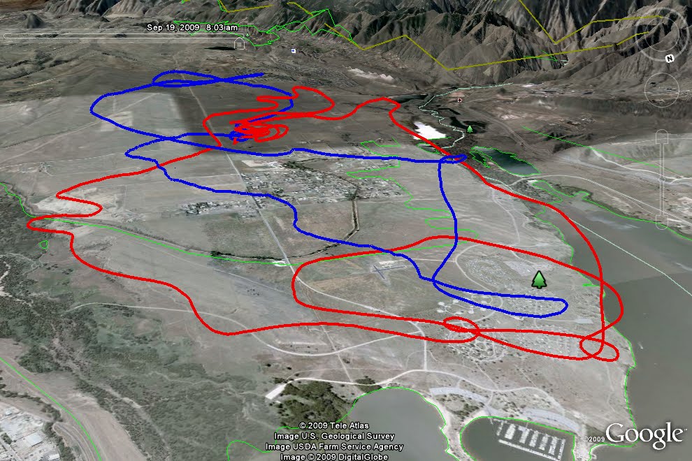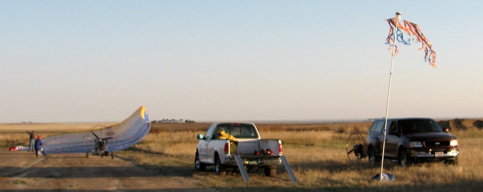 When I started to notice the bumps were getting bigger I turned back to the truck and landed. It was a nice landing, I came in from the North and managed to stay just above the surface for 200 feet even though the grade was ascending. When I set down it was where I wanted to be, maybe a bit close because I almost took out the windsock with the wing. As I was packing up the breeze dropped 10 degrees and picked up. It felt good…It was a no muss …no fuss flight…just a nice taste of the sky before the cold front blows in. Tomorrow it’s forecast to be 23knots at 3:00pm. Think I’ll go sailing.