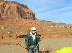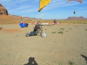 Monument Valley is a trip every pilot should make sometime in their lifetime. There were a number of pilots that didn’t successfully launch on the trip as it is indeed an advanced launch site. I watch two pilots, one on Saturday nightand another Sunday morning take major sink at the end of the runway. Both walked away, one needing a new spark plug boot, the other needing a new cage. The potential for winds, thermals, rotors, the high altitude, ground hazards for launching, and terrain is not a place for an inexperienced pilot. Even though I have close to 1000 hours of flying in my 5 years, it did not prepare me. Not once was I able to successfully do a forward inflation as either the wing would catch on something or I didn’t have the speed to keep the wing loaded. Coming from sea-level beach flying altitude to an LZ one mile high was part of the issue. Anyways, many thanks to Joe for arranging the event. It was great meeting old friends and meeting people behind their usernames like John Fetz, Lance, Brian, Delia, Ola, Faith, Luke, Ron Nolan, Stann, Jeff Goin,John Black, Jerry Kerr, Sky King, Mo, Sean, George, Joe, and so many others. Oh, and watch out if you ever play Texas Hold’m with Jerry, John, or SkyKing. They funded part of their trip from me.