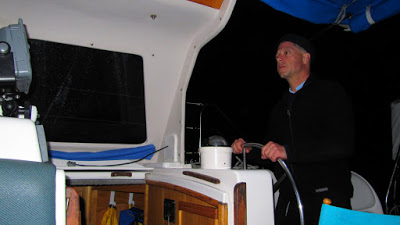 2200 hours We have been on a close reach to starboard for awhile and when the wind shifted Bill decided to tack to port sending us almost directly north at 4 – 5 kts. Steering by the wind we varied between 001 degrees and 024 degrees until midnight when we jibed back to starboard. It bought us a little distance from Hispanola but didn’t advance our course. Sometimes the fastest way to a mark isn’t what you think it is.