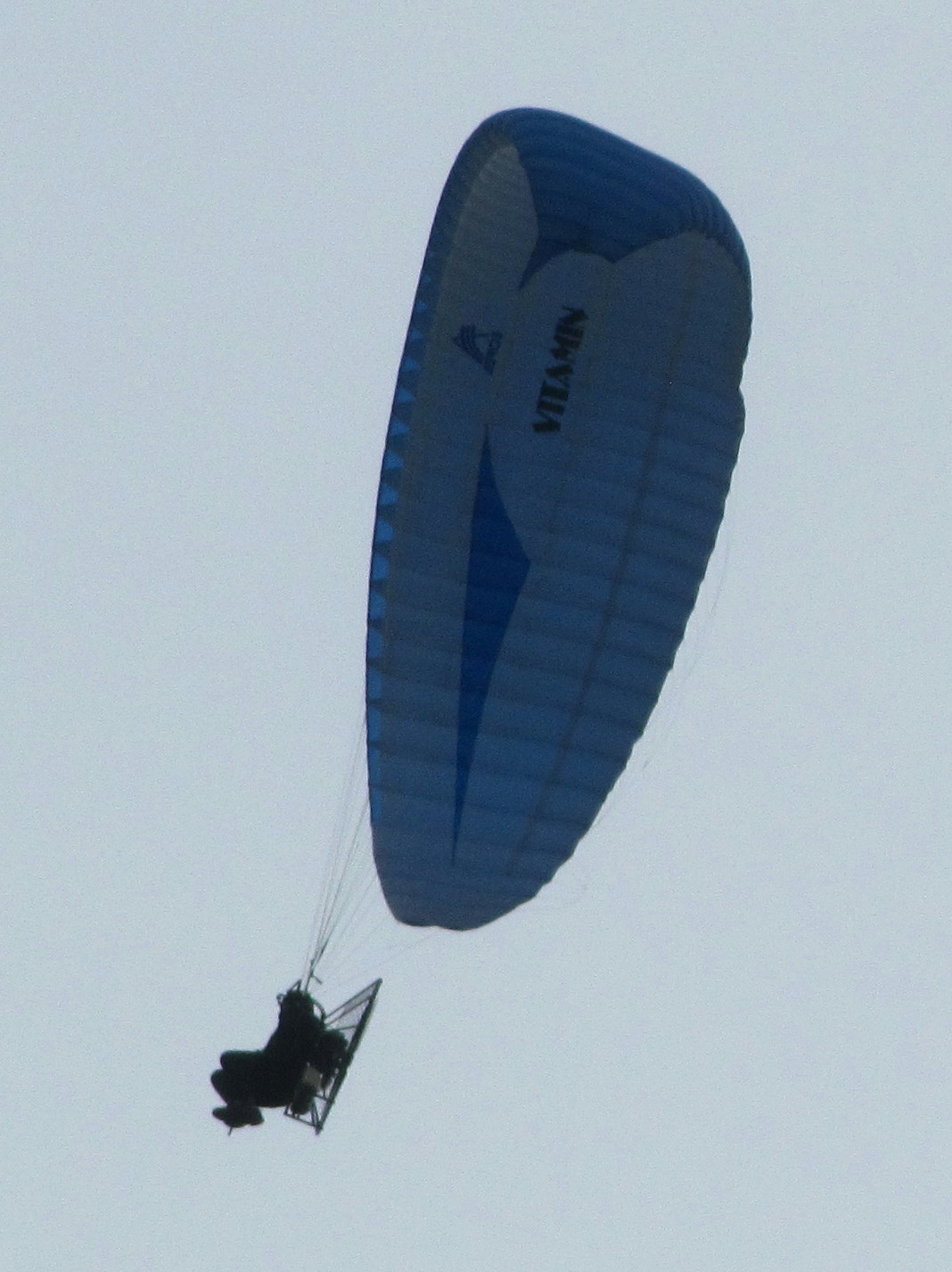 There were a couple of small GA guys practising touch and goes and one overflew me a bit close for comfort. I didn’t think his vortex was going to be terrible but I banked and dove just to be sure. When it hit I had a one third collapse that popped out quickly. I was at least 150 feet away from his flight path and 200 feet below so it was surprising that I felt any turbulence.