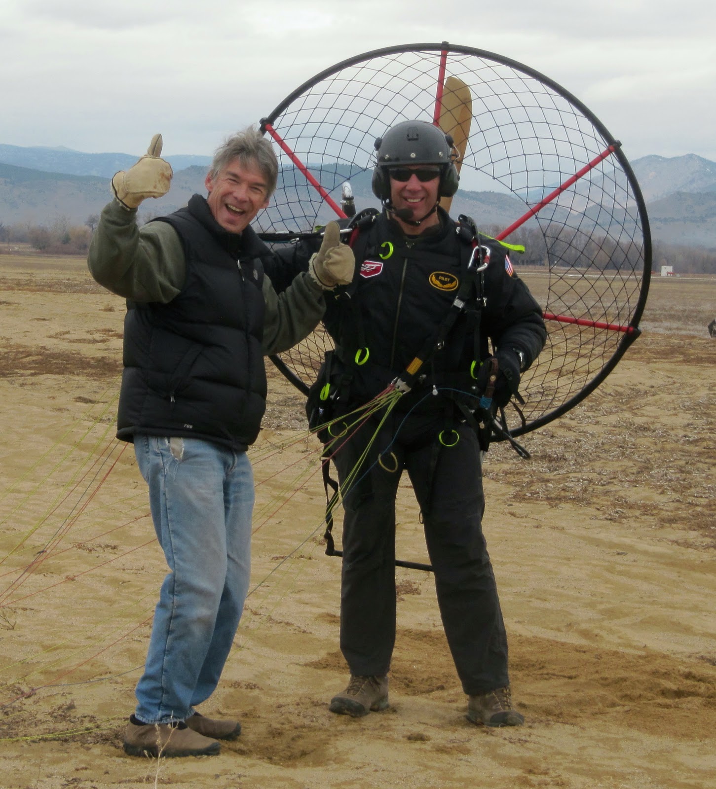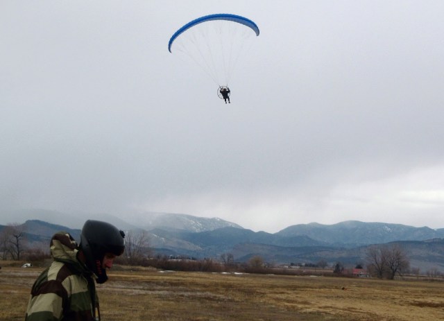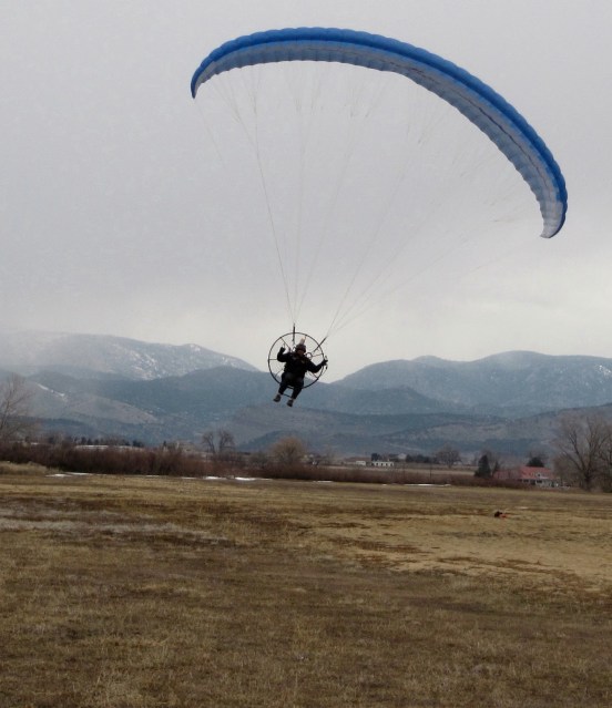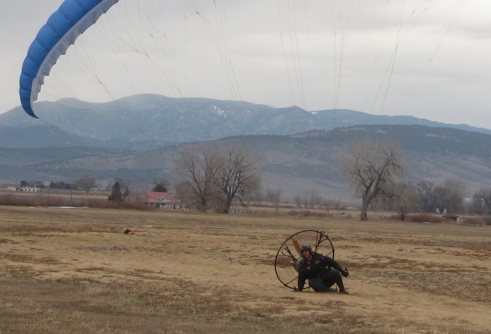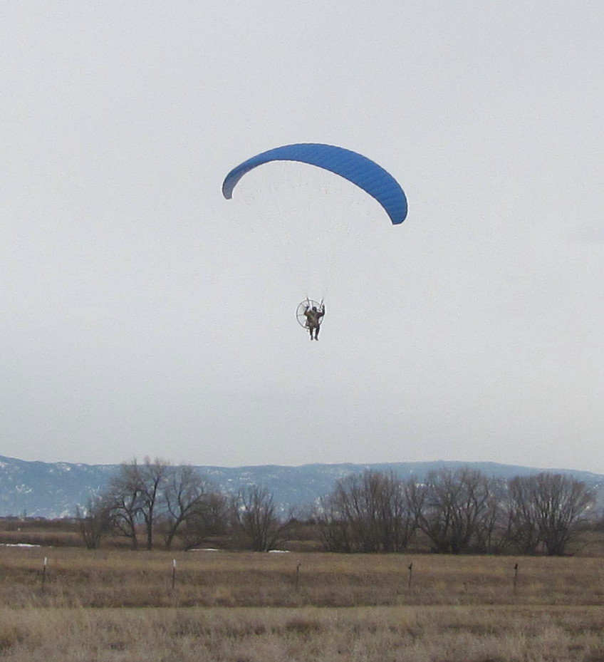 An unusually warm winter day and glassy air was just to good to pass up. I stopped at St Marys LZ in hopes of an early lauch, but the field was still wet and muddy so I went North to Vance Brand Airfield. No wind takeoff was smooth and so was the air. Last weeks shop time payed off handsomely, there was no belt slap and the vibrations were reduced significantly.