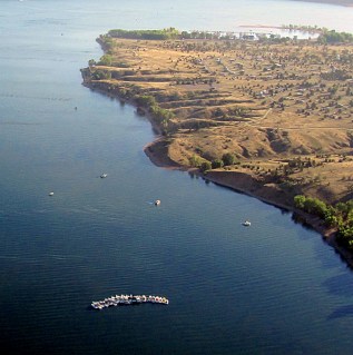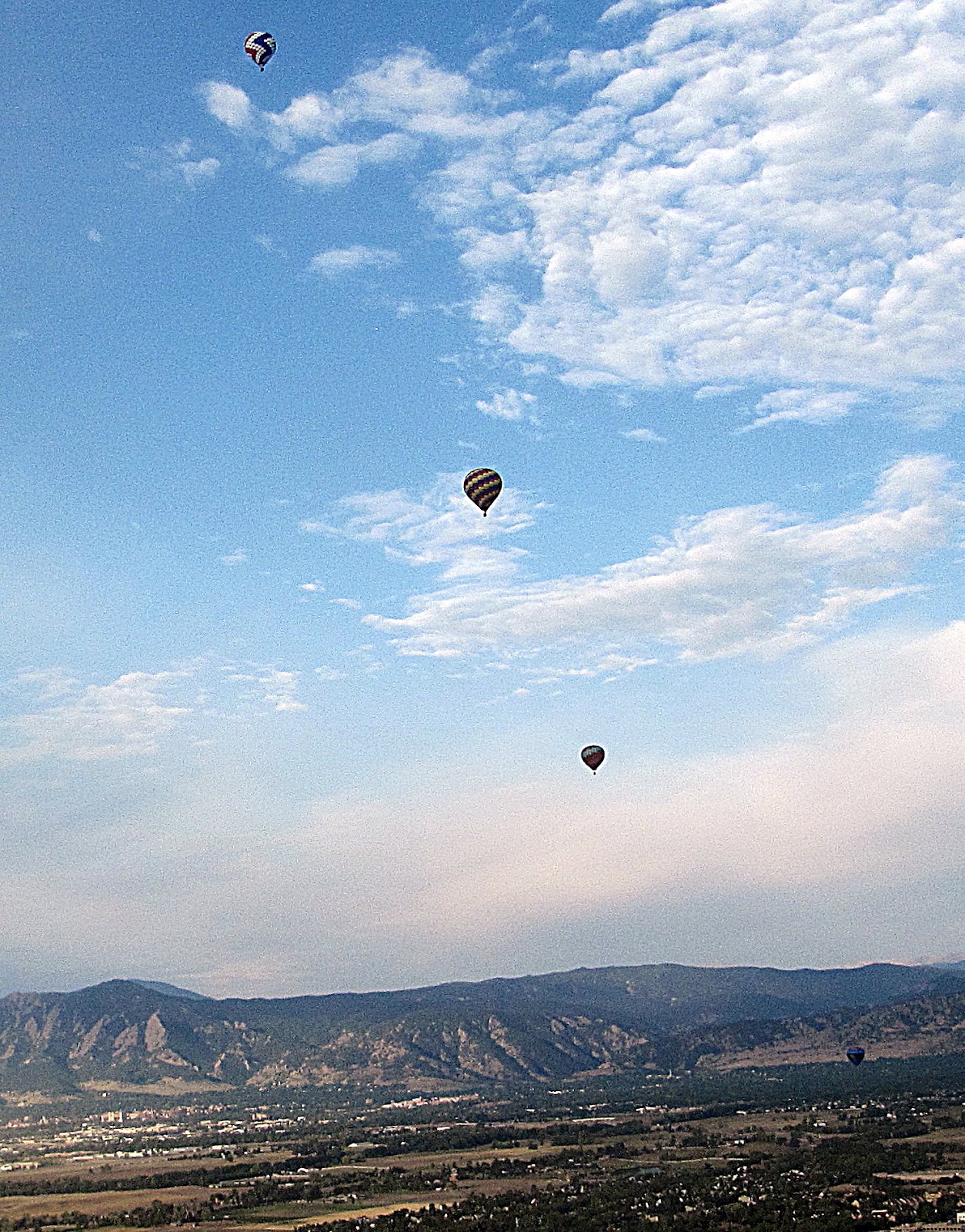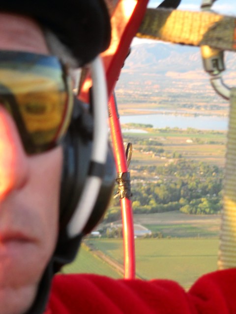 There were 5 balloons ascending over the west end of the lake so I set course and caught them in a string stretching from North of the corm maze to the south end of the Reservoir. On the way back to the south end I encountered a red white and blue balloon close to my altitude we blew by each outer with a wave and I turned around toward the bottom of the lake.