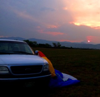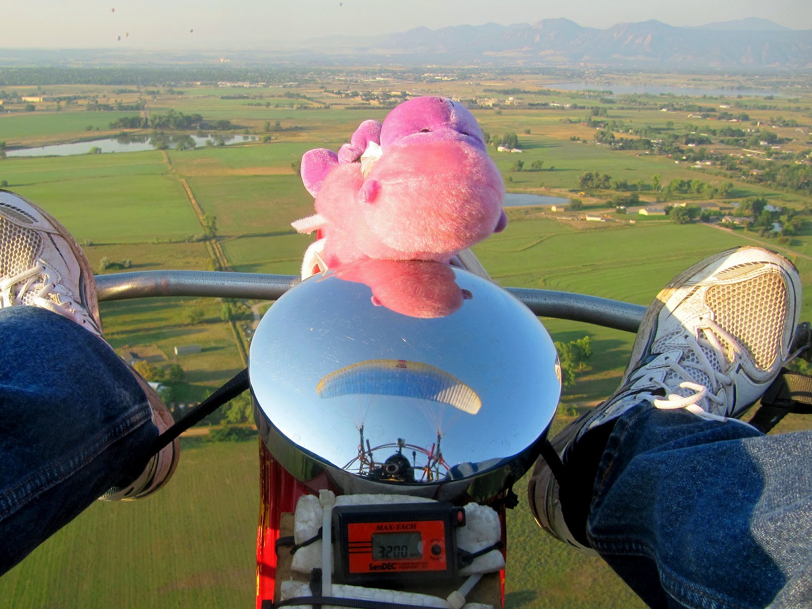 The Fagawie was a floater with little wind at the start eventually dying to zero. Our speed was measured in inches per minute so we decided to abandon the race in favor of getting an extra hour of sleep. At 6:00am the alarm went off and Dawn and I struggled to crawl out of the berth. The air was considerably cooler than the last couple of days and I pulled on long johns to wear under the light pants I’ thought would be sufficient. At 7:00am we were pulling out of the Marina and encountered Chris Montes who had made the wrong turn at Roxbourough. He waved and follow us to the field where we saw a big part of the Front Range Flock. John Sieb was getting ready to launch and I counted several others including, Mike Bennett, Ty, Nate, and Marek and amazingly Chip who hadn’t flown with us for ages.