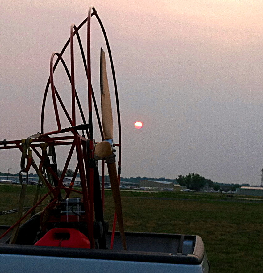 This was a good one. I arrived at the field 20 minutes before dawn. The launch was clean but the air was very twitchy between 50 and 100 feet. Once above the layer it warmed up and was very smooth. There were no balloons today unlike the last 3 mornings so I explored the south and returned to the field. Not a real long flight but very enjoyable.