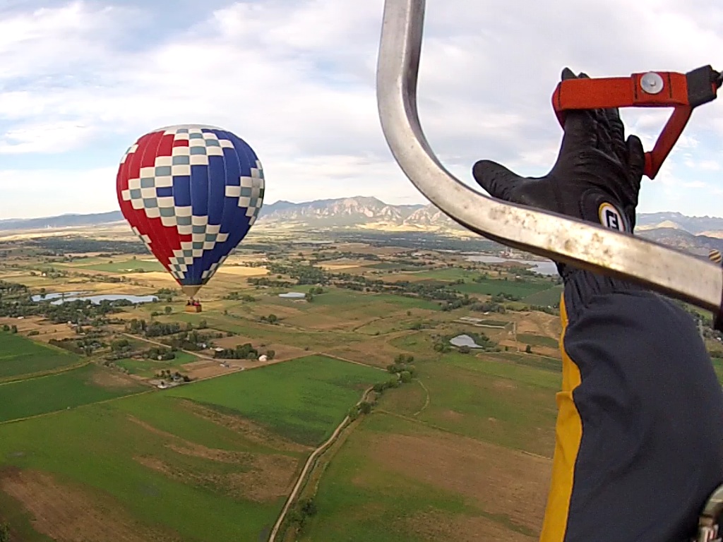 Calm at the surface with a 10 mph Westerly breeze at 100 feet. There were two nasty thermoclines at 5800 and 6300 feet MSL. Over 200 feet it was at lease 10 degrees warmer. First flight with the balloons and then a short one for practice. On the second launch a slight wind dad come up and when I powered up to launch the wing was popped up and overhead before I even started rolling.