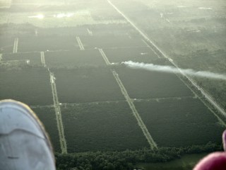 Awoke early when my wife’s alarm went off. Thought what the heck. Just before leaving I got a Facebook message from a new guy … Mike Otten. We met up at SC and set up. There was just the slightest hint of a breeze from the NE. I took off downwind and loitered while Mike set up. He had a couple of failed launches but got off even though his wing was soaked. Very impressive no wind launch with a wet wing. Cruised a few miles east. Saw a runway cut into one guys property and spiralled down to check it out. Also chased down a fire only to find it was somebody burning trash.