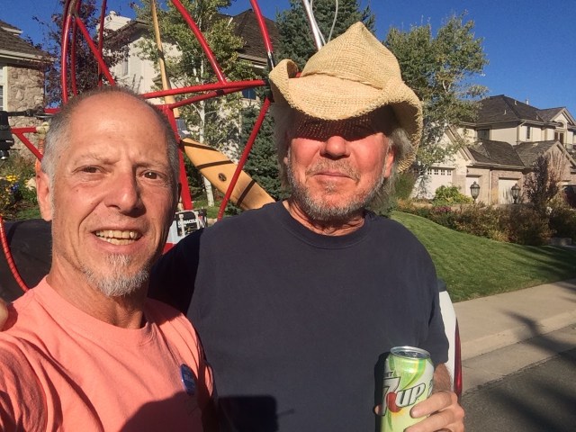 After I saw Dawn off I drove to Highlands Ranch where I spent the afternoon with Rex Mangurian. Rex was working on his Falcon and still in the glow of MV. Rex and I got to know each other in the early 80’s when I was a Factory Rep in the bicycle business. He has changed very little over the years, still into the outdoor toys and the vices we grew up with. I thought I had a great garage but Rex has me beat. Two big Motor cycles and a trick little trike that gimbals… and lots and lots of stuff. Rex gave me a mason jar out of his garden and I hit the road.