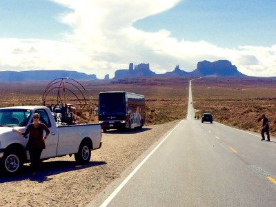 At 2:00 we were gassed and ready to go. We stopped at the Forest Gump turn off and took the obligatory photo. On the way to Moab I thought about Gatherings past and wondered if I would ever see my personal Holy Grail again. I thought back to the first time I’d come to Monument Valley more than a decade ago. It was May and the reservation was teeming with life, the wild flowers were blooming, and the arroyos were scoured clean. I remembered going down to the airstrip and setting up to launch west across the runway. My first cross country around Mitchell Butte and to the entrance of the part. The next morning when I flew deep into the park, circling the three sisters and spiraling down on The Hub that is the center of this sacred place. I thought of the solo flights that could have ended badly if I’d gone down without someone to retrieve me and the guys who had been injured and even died. Most of all I remembered the magic evening flights with the rocks a brilliant orange from the setting sun and the wings of my friends looking like butterflies playing in a rock garden. I’d been lucky, many dozens of flights without a hitch. Time to move on.