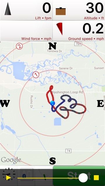I was hoping to see through some holes to navigate but was just barely able to make out a few high contrast shapes. At 1300ft it was cotton candy as far as I could see and it didn’t look like it would get any better, and…. could possibly get worse. I didn’t want to try a blind landing. The GPS was great for flight data but as a map and navigational aid, not so much.