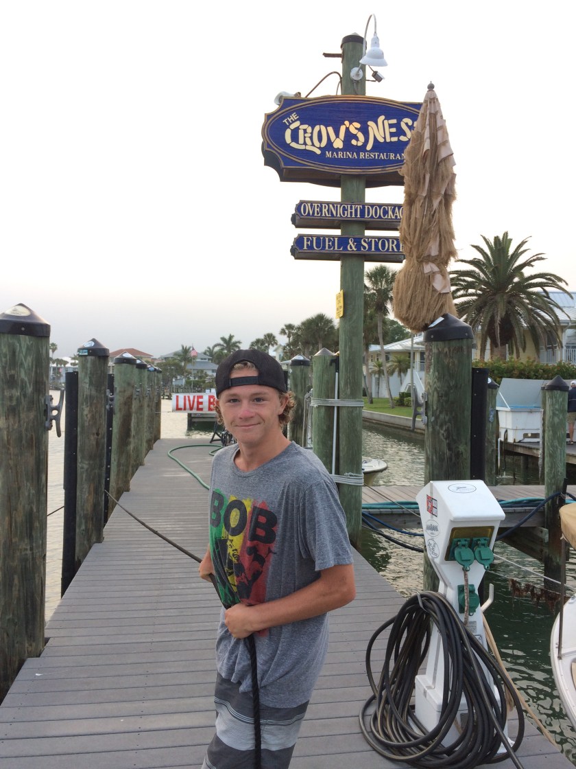 After running a strong current at the Venice Jetty we arrived at the Venice Yacht Club only to find a large cruiser had taken our slip. We called the office and were informed that the dockmaster got of at 4:00 and there was nothing they could do. That sucks! So we called the Crows Nest which was the first marina we saw on the way in and were able to get a slip. Docking was a bit of a trick against the current but Captain Tim worked the twin screws like a master.