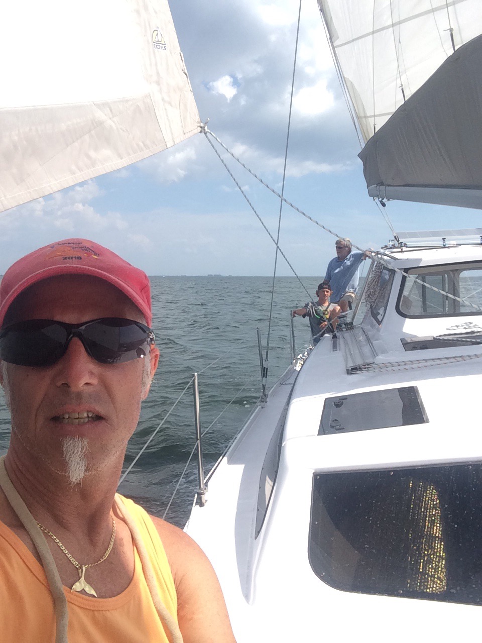 The next morning our mate “Jorden” (?) showed up at sunrise and we were off the dock by 8:00. There was a low fog but visibility was good enough. We motored down the river and into the bottom of Tampa Bay. Once out, the winds were on our nose so we were forced to motor down to Venice. The Gemini is a catamaran and not a full displacement boat. It’s beam is 13ft and it rides the chop as expected….. we might have chosen to sail but it would have been poor VMG and we would have had to sail all night and I don’t thing anybody sign up for a hard passage.
