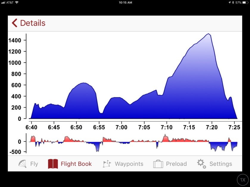 Better and better. I was noticeably more comfortable in the air this morning. It just took awhile to get back in the game. The launch was slightly crosswind. The APCO LIFT EZ is still pulling to the right under power.