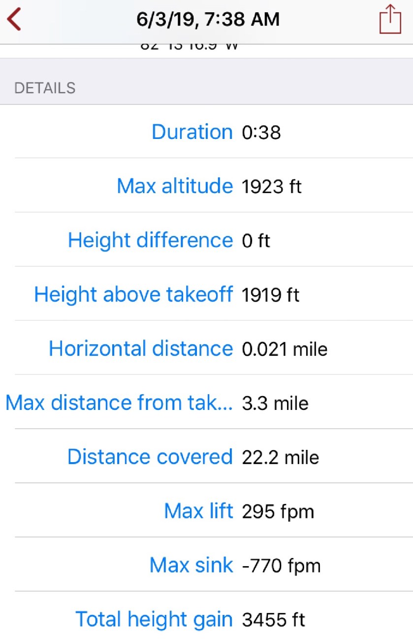 We flew Gasparilla Island. I mostly stayed high except for a a portion of the beach run. Ground speed out was 21 or 22 knots and return was 47 or so.