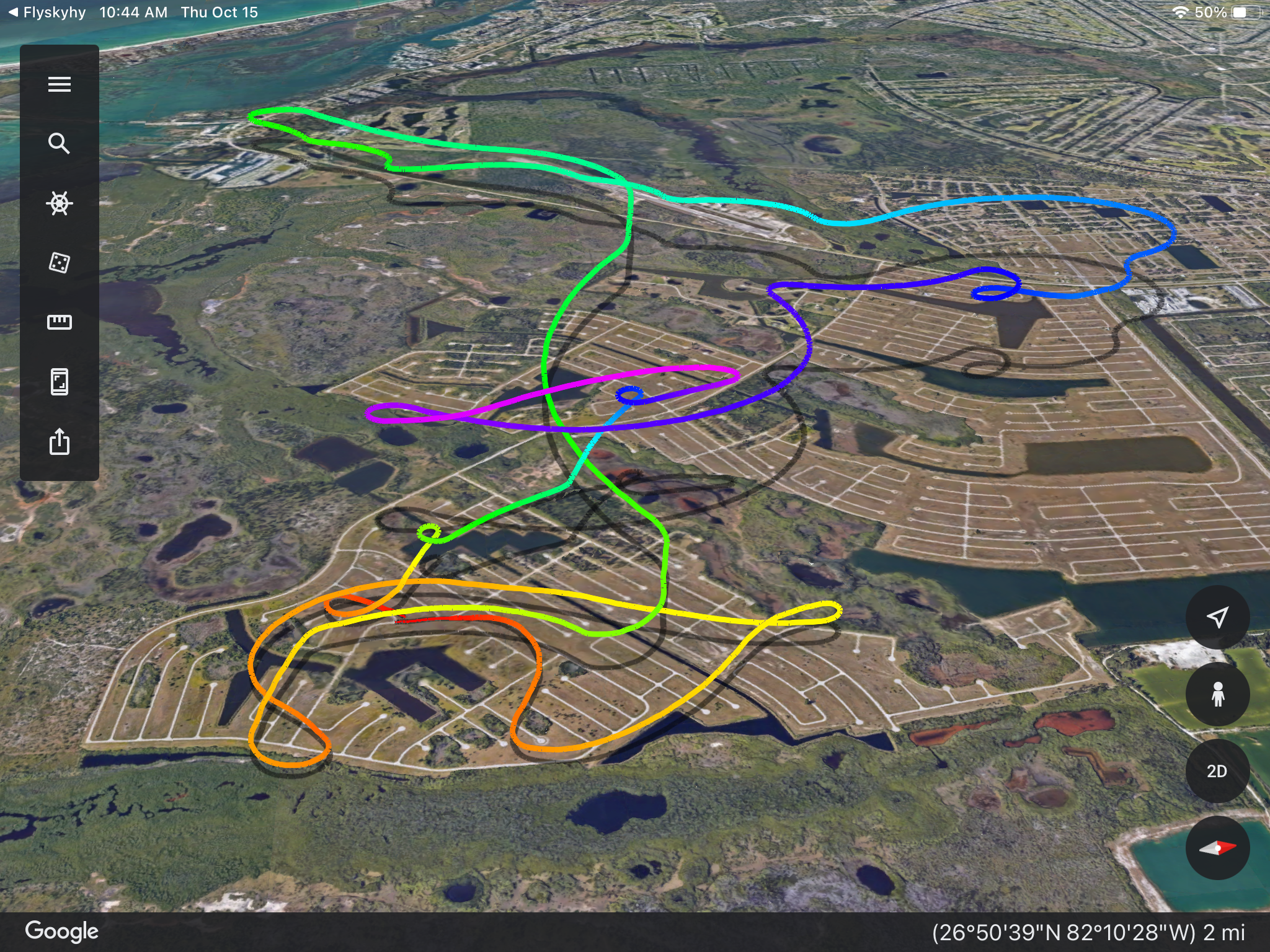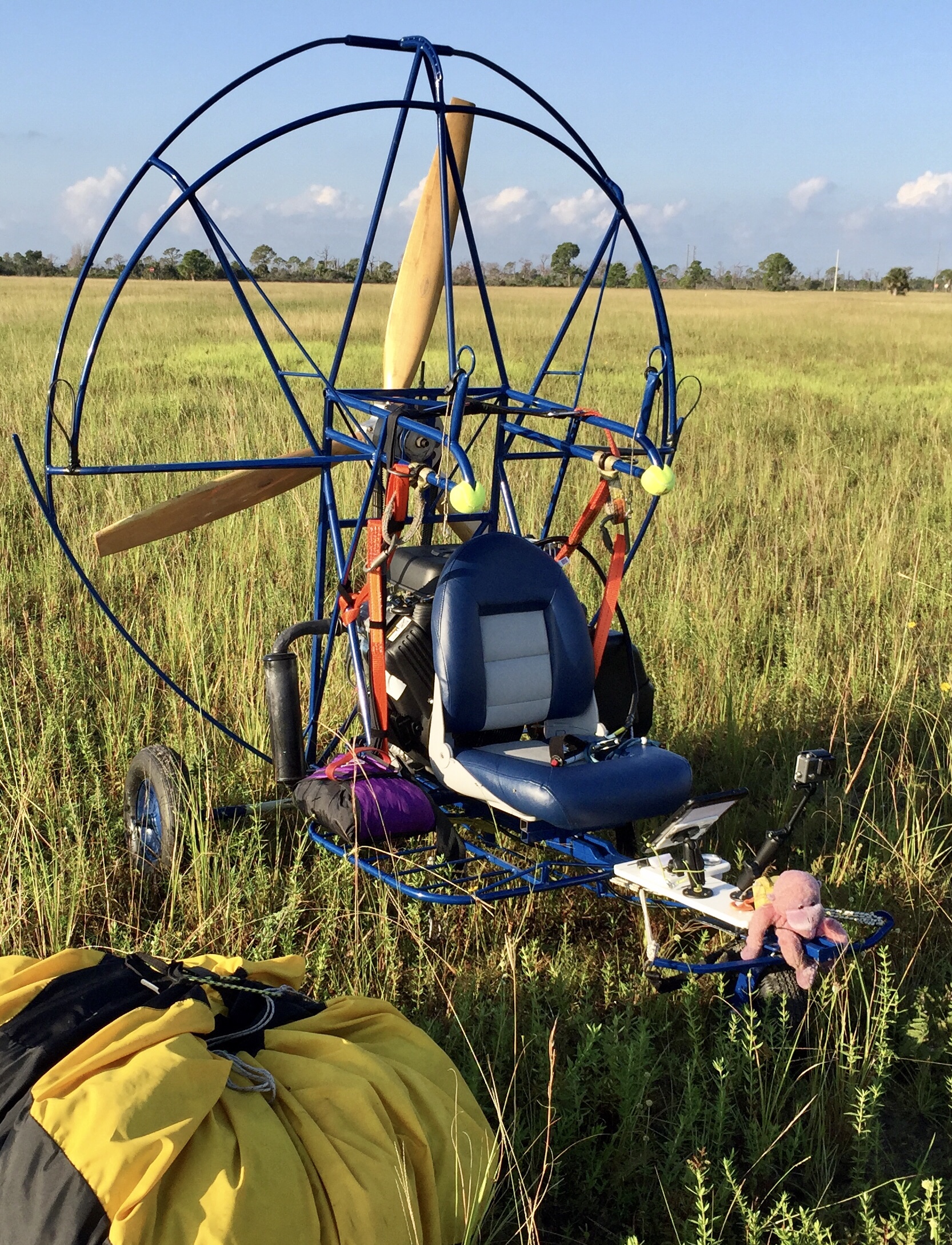 Takeoff was messy. Fortunately the wing came up clean, I committed to launch and ran up the motor. Maybe I’m getting my speed cues from the breeze in my face, it felt fast to me. I tapped the brakes and lifted of and just as quickly , I touched down before starting the climb out. Hardly what I expected with a 7 knot headwind.
