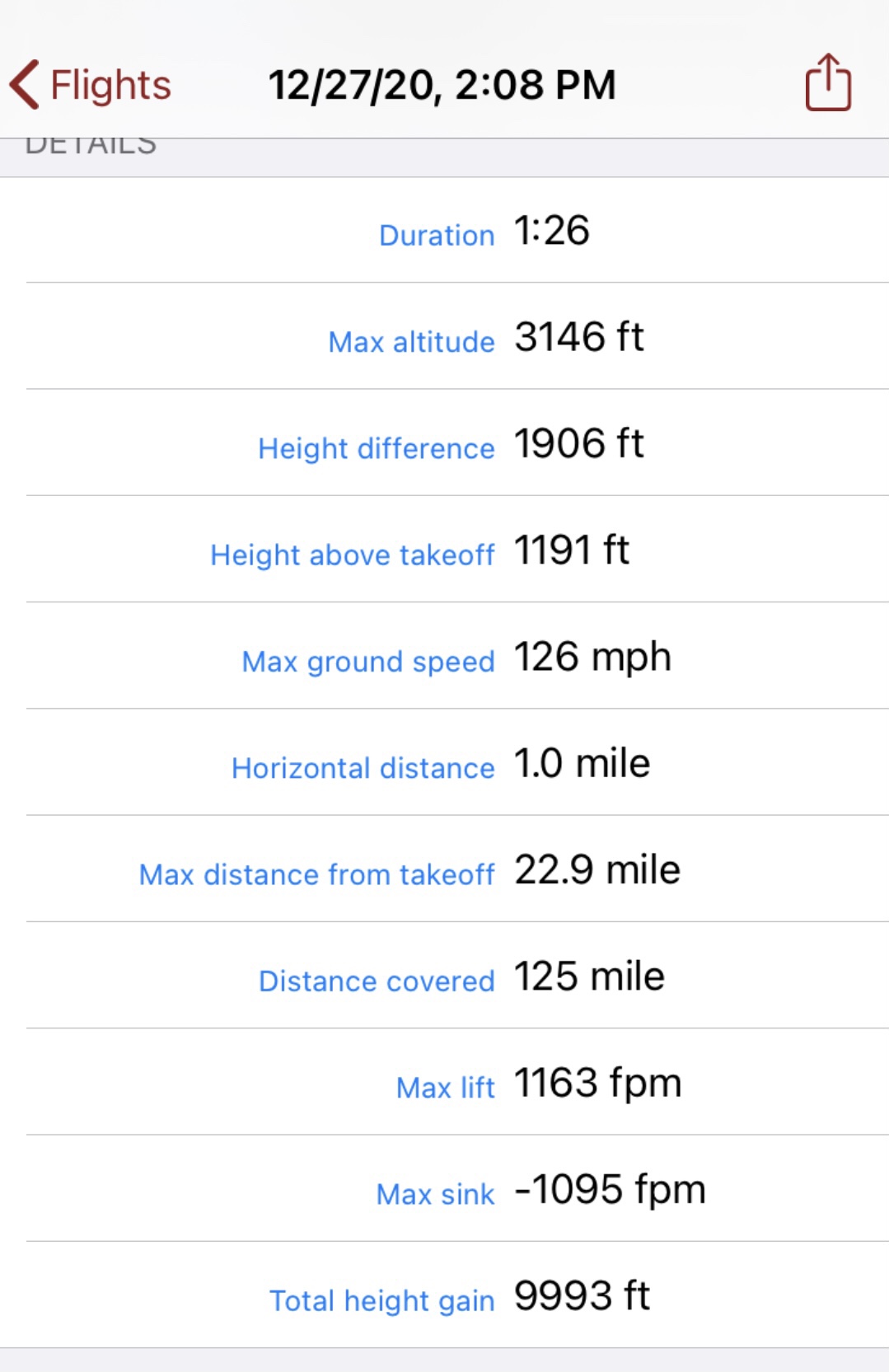 Landing was much better than the last two. Because of the rowdy air I had to actively fly the wing to keep control during decent. For the first time since I got sick I was flying with some weight on the toggles, feeling the wing instead of just giving input when I wanted to initiate a turn or something. When it was time to flair I was much more comfortable and was able to float the wing for a long way to bleed off energy. The lesson of the day was ….fly the wing! Hang a little weight on the toggles and feel what’s happening. I think it’s something that’s been lacking since the long sabbatical due to illness. It feels good to be getting my skills back.