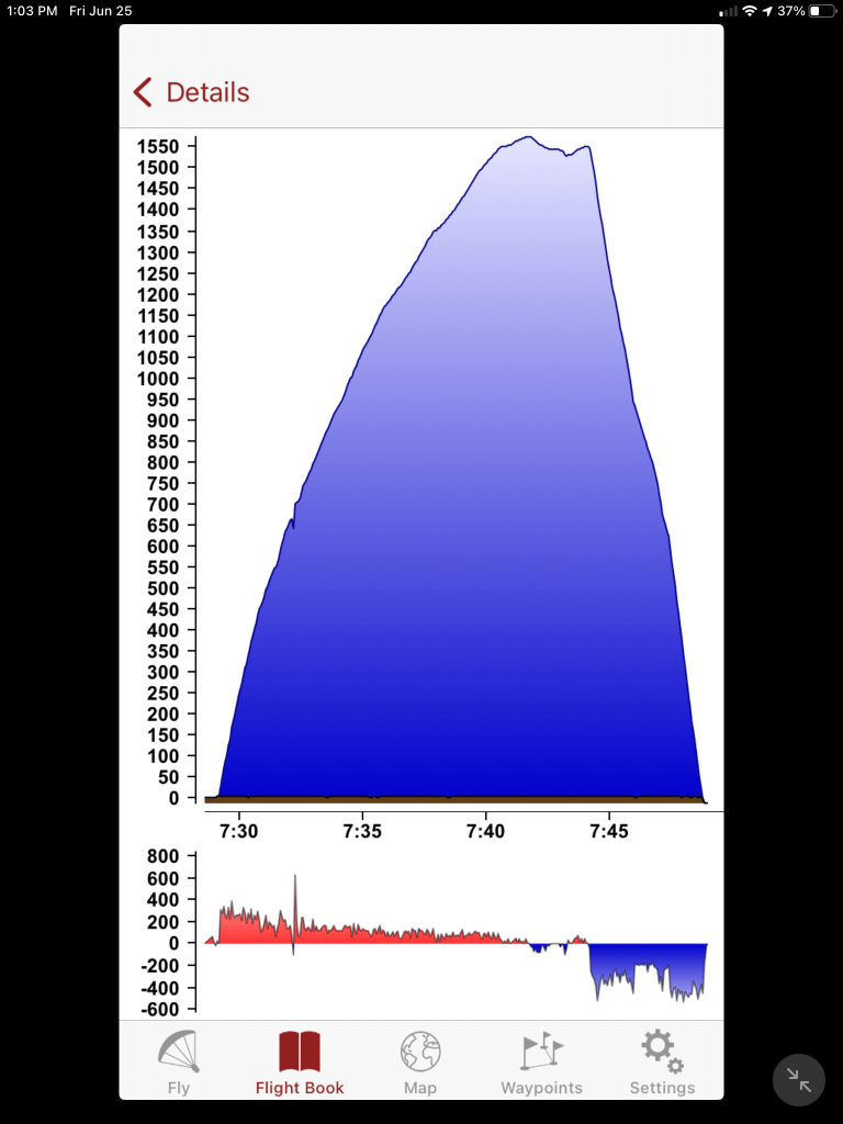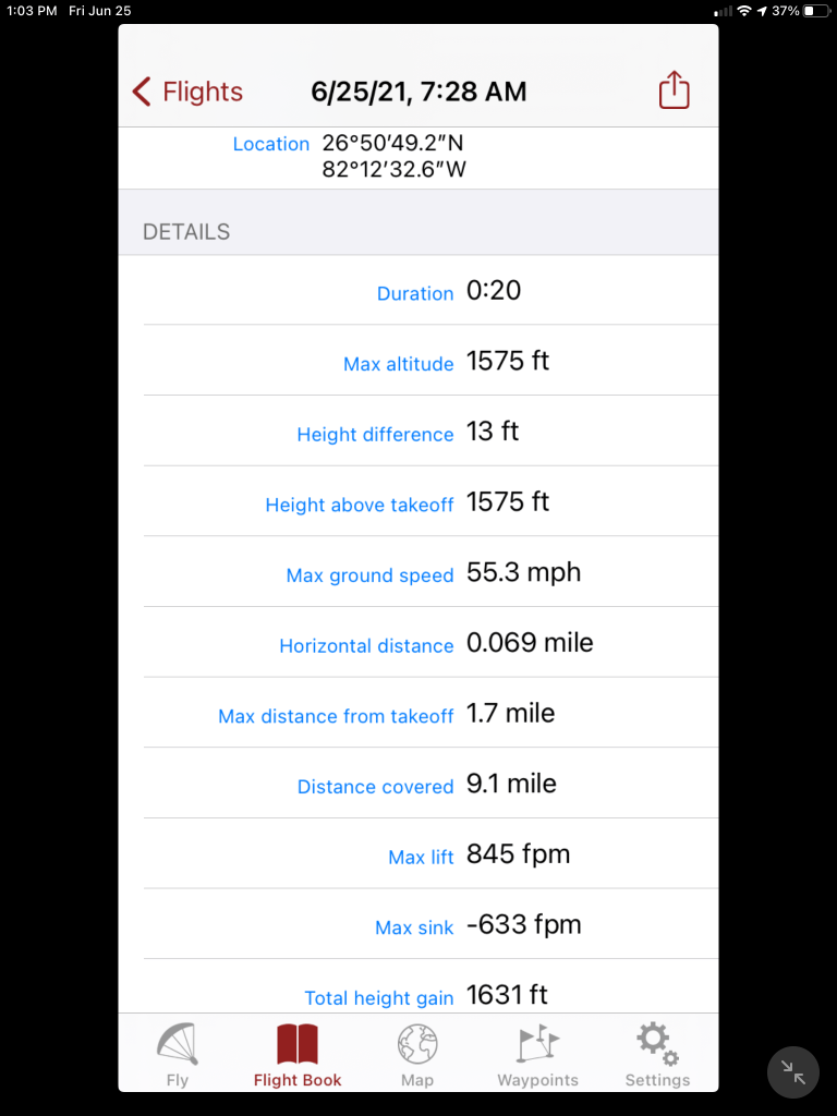 It was mostly cloudy and rated a 6 on the bump meter and the wind was 15mph so after 20 minutes I decided to land.