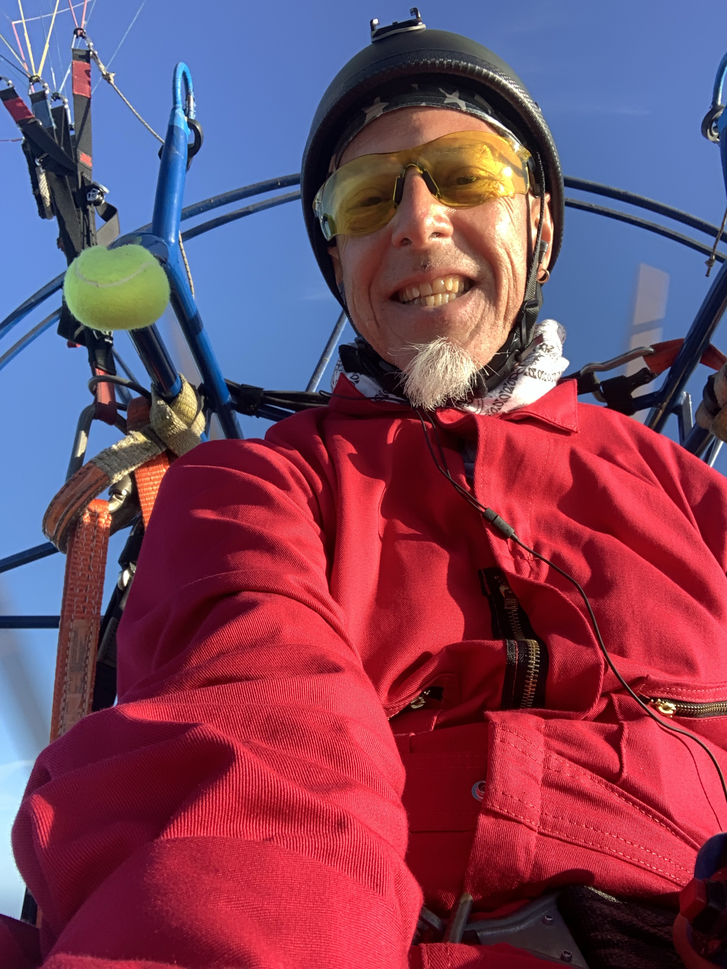 Using both WTS and brakes, I made one pass by the truck to confirm wind direction, then powered through a 360 turn and used the energy from the turn to swoop the landing. I popped up , lined up and greased the best landing this machine has had. It took conscious effort to get the last couple of inches of brake and I had to work the shoulders and position my arms for maximum effort but it paid off with the rig bleeding off speed nicely. Despite the rough surface I barely felt the rear wheels touch and the front came down very gently.