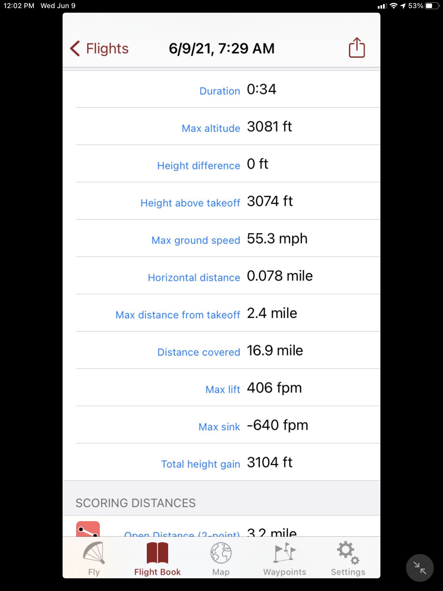 I tooled around the patch for half an hour climbing above 3000ft. The cool air felt good. I started encountering bumpy air at 700ft and it was downright rowdy at 200. My plan had been to go low and practice power management for awhile but the thermals were popping and the wind was building. It was time to get down ….now.