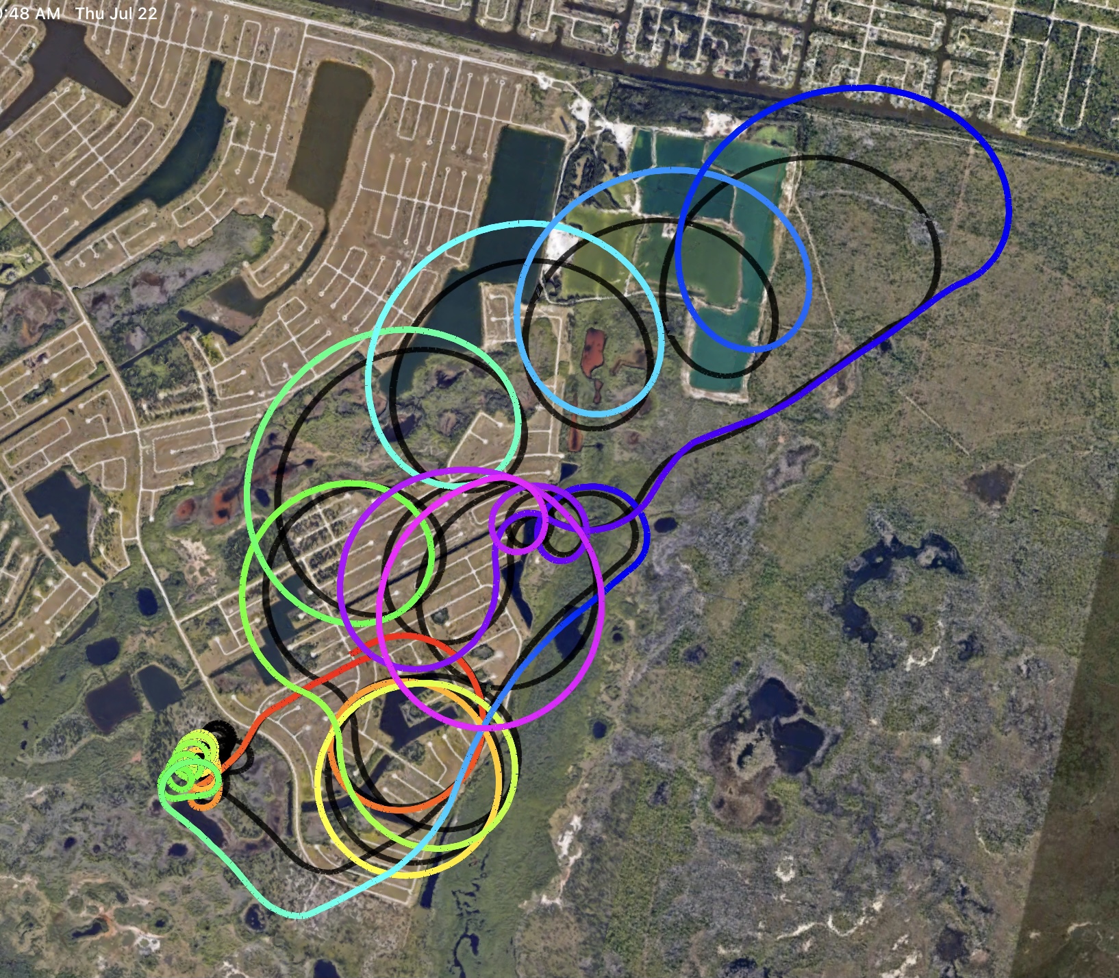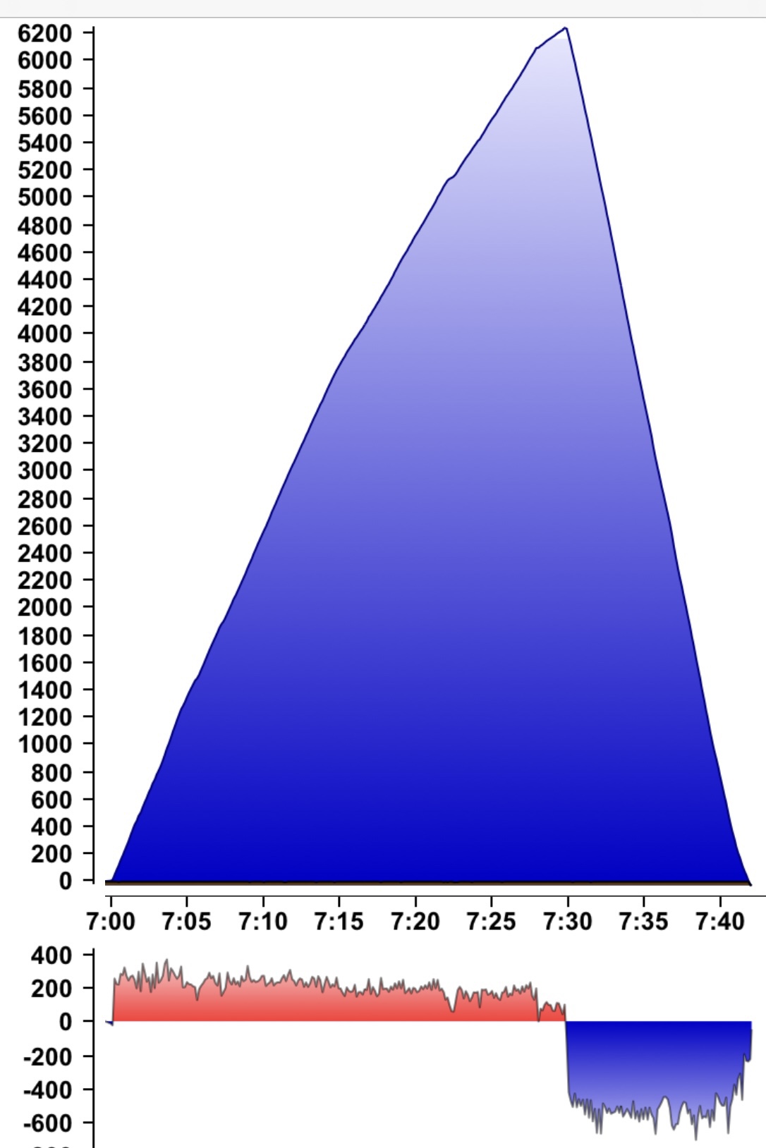This was my fifth flight in so many days. Like yesterday I went for altitude but this time I wore a flight jacket over the red suit. It was probably the laziest flight I’ve ever done. I let the torque steer do the work while I made lazy circles up to 6000. Initial climb rate was 260 but it decreased to a bit under 150 at 6000. It took almost exactly 30 minutes to get to 6000 making the average climb rate 200 ft per minute. Next time, I’ll try to note the time for each incremental 1000. Temp was 74 degrees at the surface with 99 percent humidity.