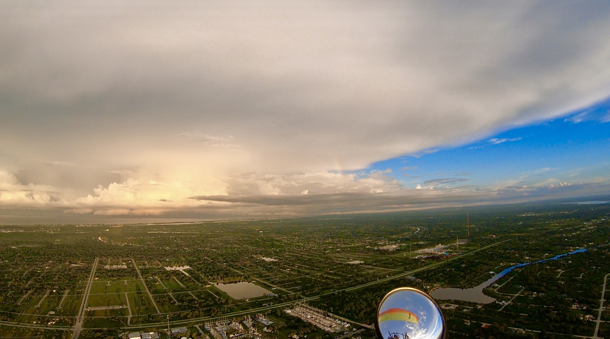 I wanted to fly beyond the truck and turn back to land into the 6 to 8 mph winds. Unfortunately I was losing altitude and there were still a bunch of palm trees that I would have had to clear. So, I picked the first available road and set down 90 degrees crosswind. The palms blocked the wind and the landing was soft.