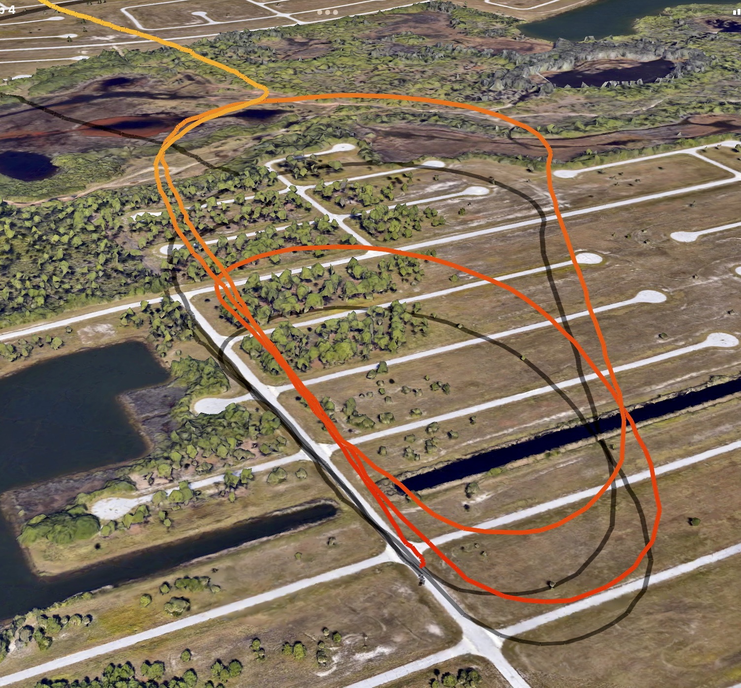 The lakes below me were smooth as glass so I descended to 350 ft. There wasn’t a big transition in air speed or temperature. At 350 I was able to make my way back at a respectable 17 mph . I’d only been up for a 25 minutes but between the hassle with the A’s and the high winds aloft I decided to cut it short. I circled the area a couple of times to check out some RV’s camped on one of the lots. The landing was clean.