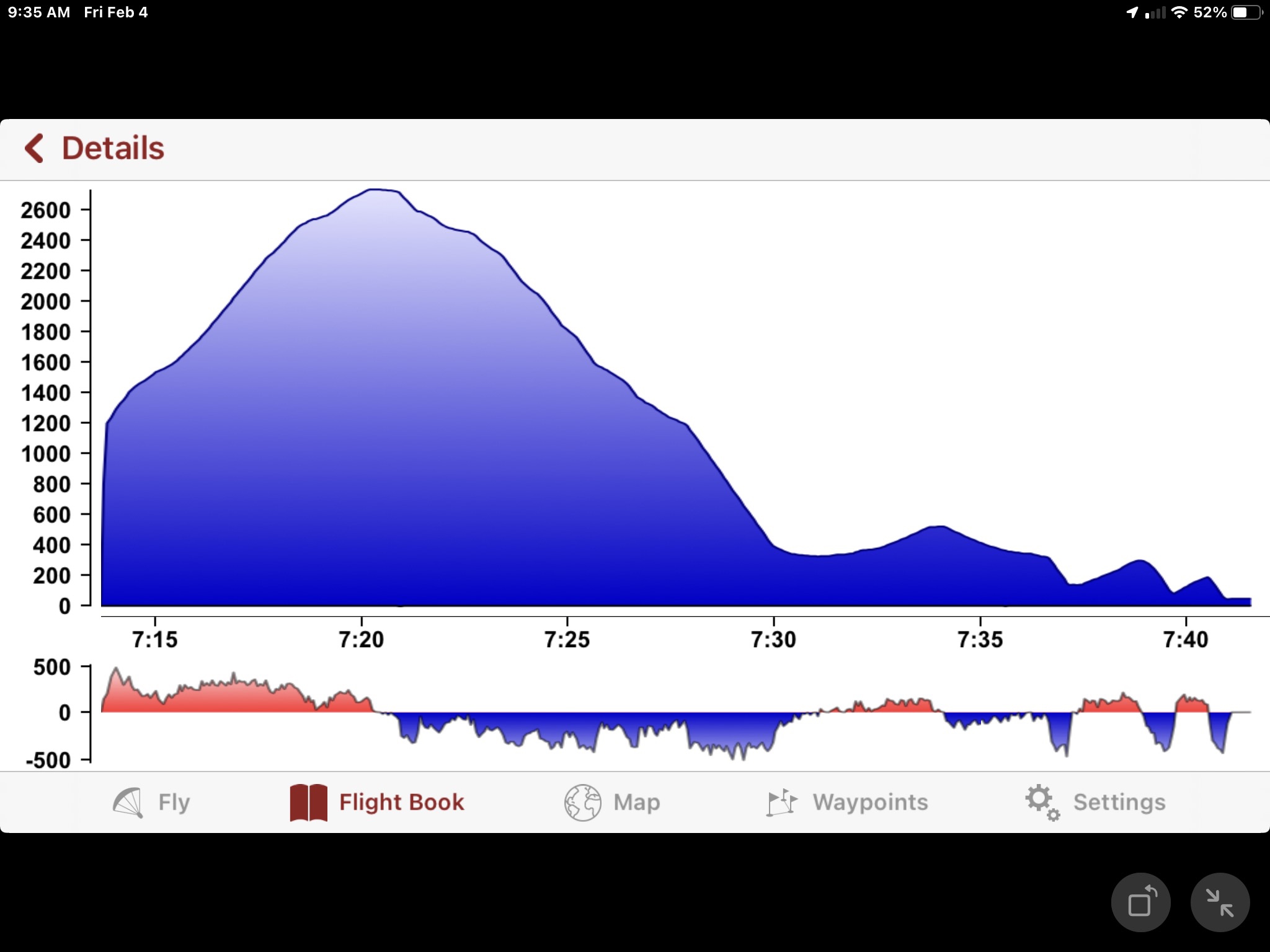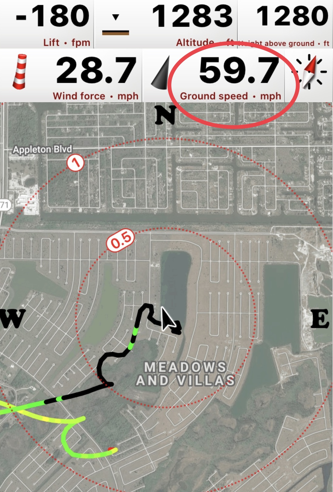 The whole time I was futzing with the A’assist I had the throttle at 80% thrust and I just let the wing fly while I sorted out the problem. When I was done I looked around and was amazed to be at 2700 ft and about a mile downstream from the LZ. The wind was considerably stronger and when I turned back my ground speed was a 1.7. I’m not sure if that was forward or reverse. At 2700 it had been at least 30 and it looked like it would continue to increase.