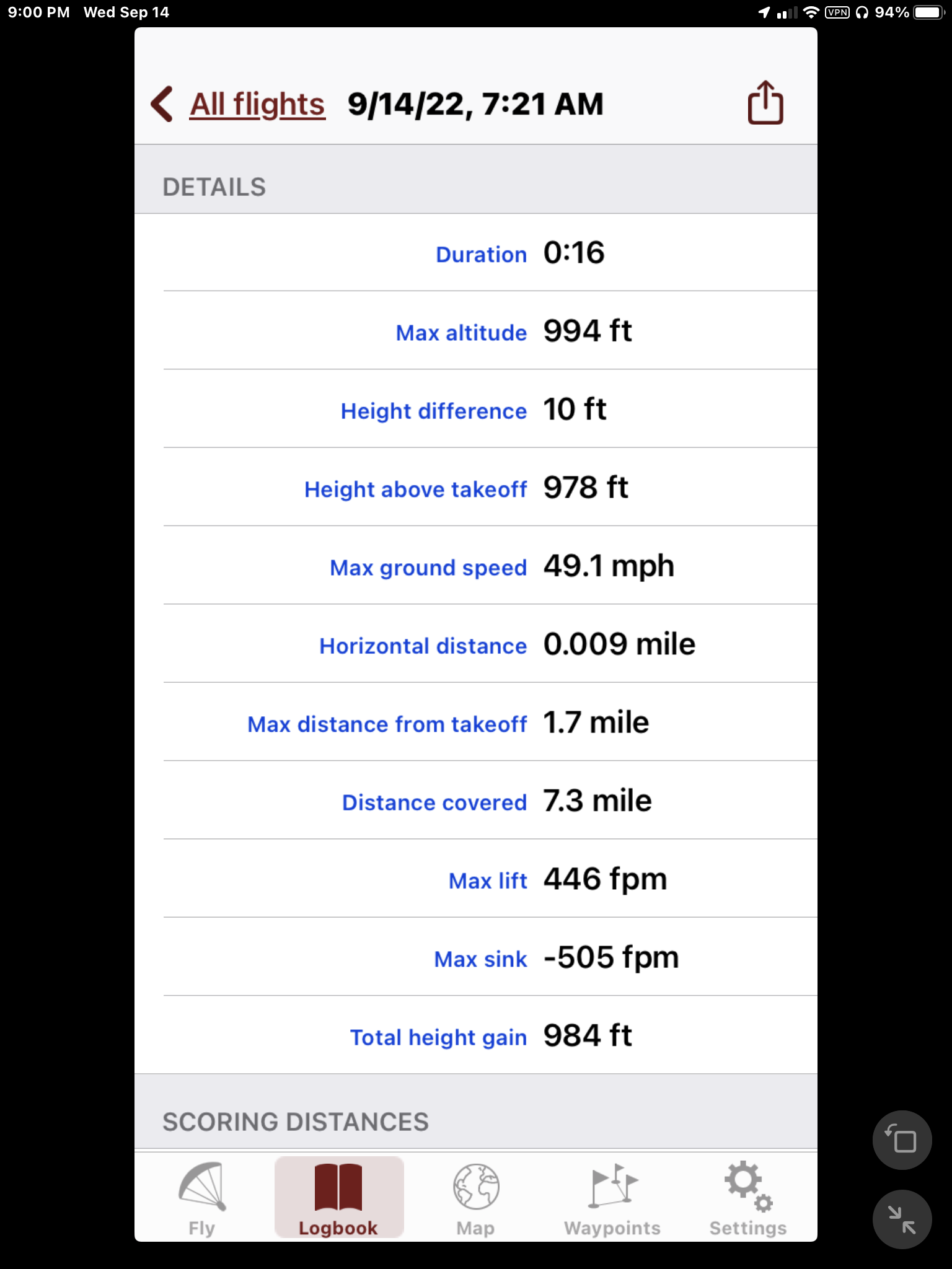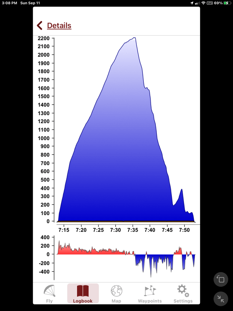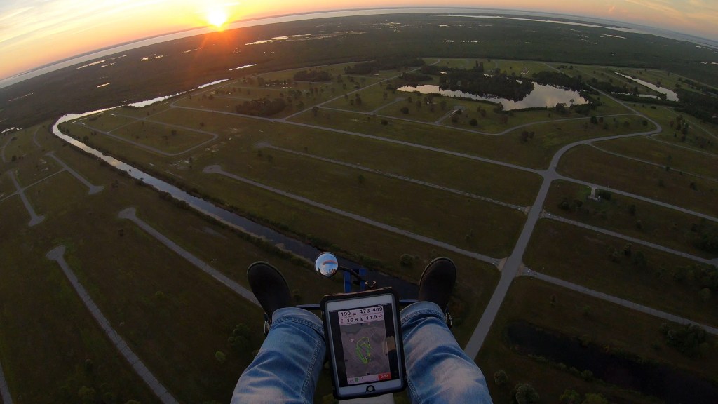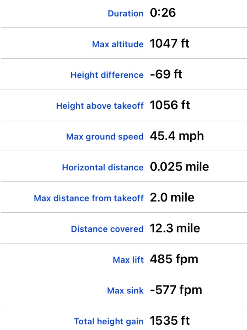 Anyway, the wing came up straight and stable, I powered up and was rewarded with a very fast takeoff. Just a tiny brake input popped me above the trees before I got there. The air was mixing and there were rain showers predicted . I did a lazy lap and set down after 15 minutes. The landing was very slow and soft. I regretted landing so quickly and dawdled around the LZ waiting for the weather to degrade. It didn’t. It stayed at level 3 bumps for 30 minutes before it got too spicy to fly.