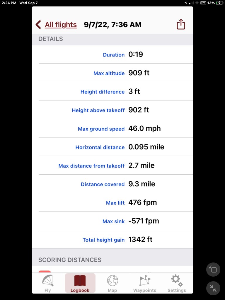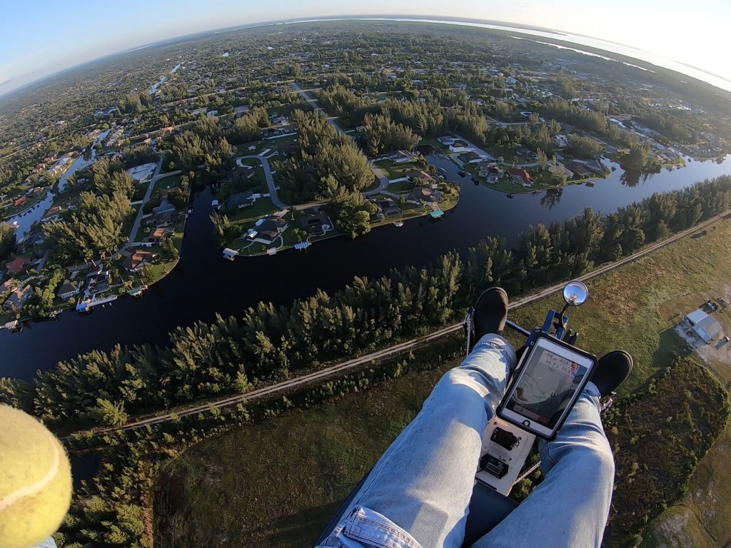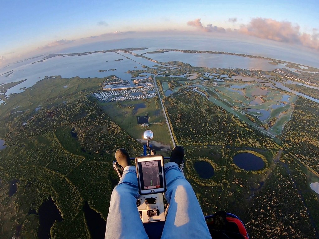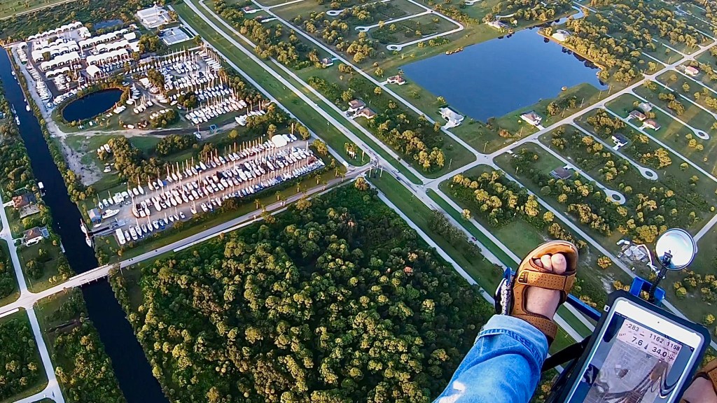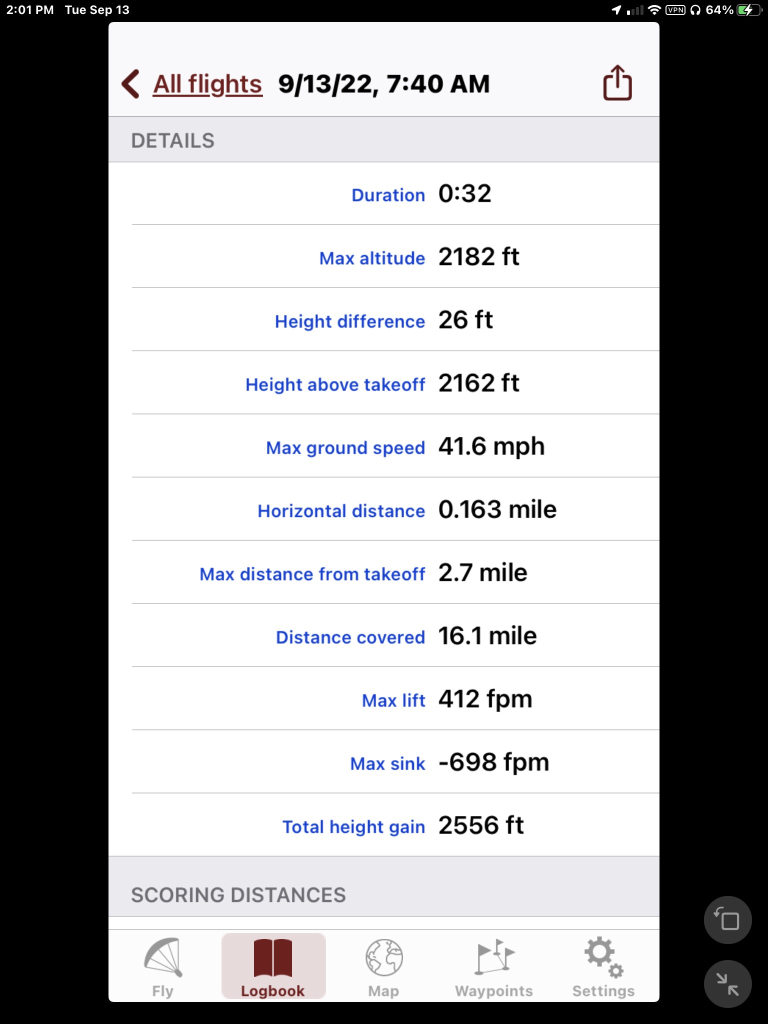 Anyway, the wing came up straight and stable, I powered up and was rewarded with a very fast takeoff. Just a tiny brake input popped me above the trees before I got there. The air was mixing and there were rain showers predicted . I did a lazy lap and set down after 15 minutes. The landing was very slow and soft. I regretted landing so quickly and dawdled around the LZ waiting for the weather to degrade. It didn’t. It stayed at level 3 bumps for 30 minutes before it got too spicy to fly.
