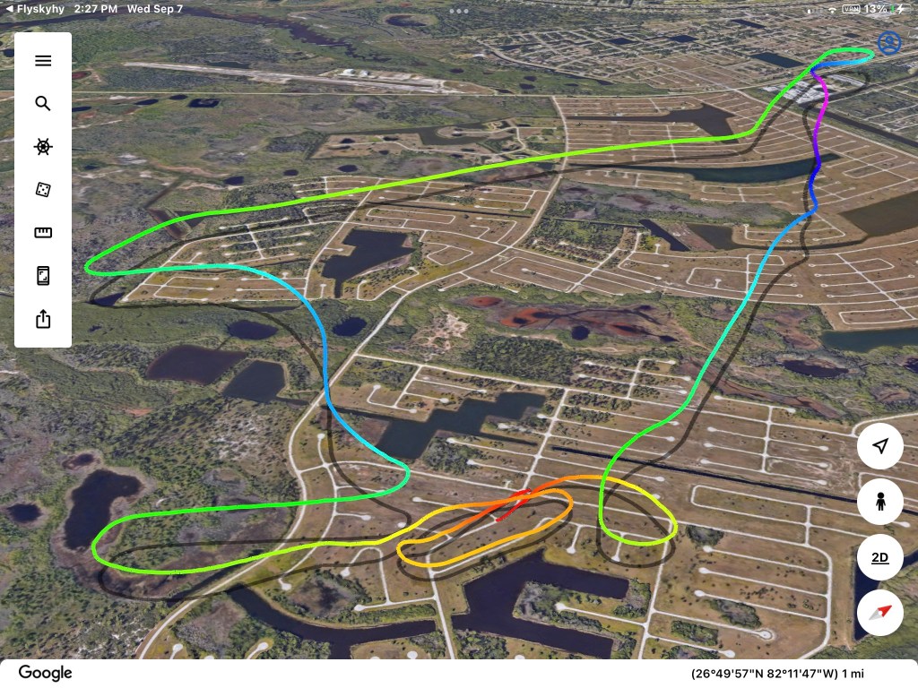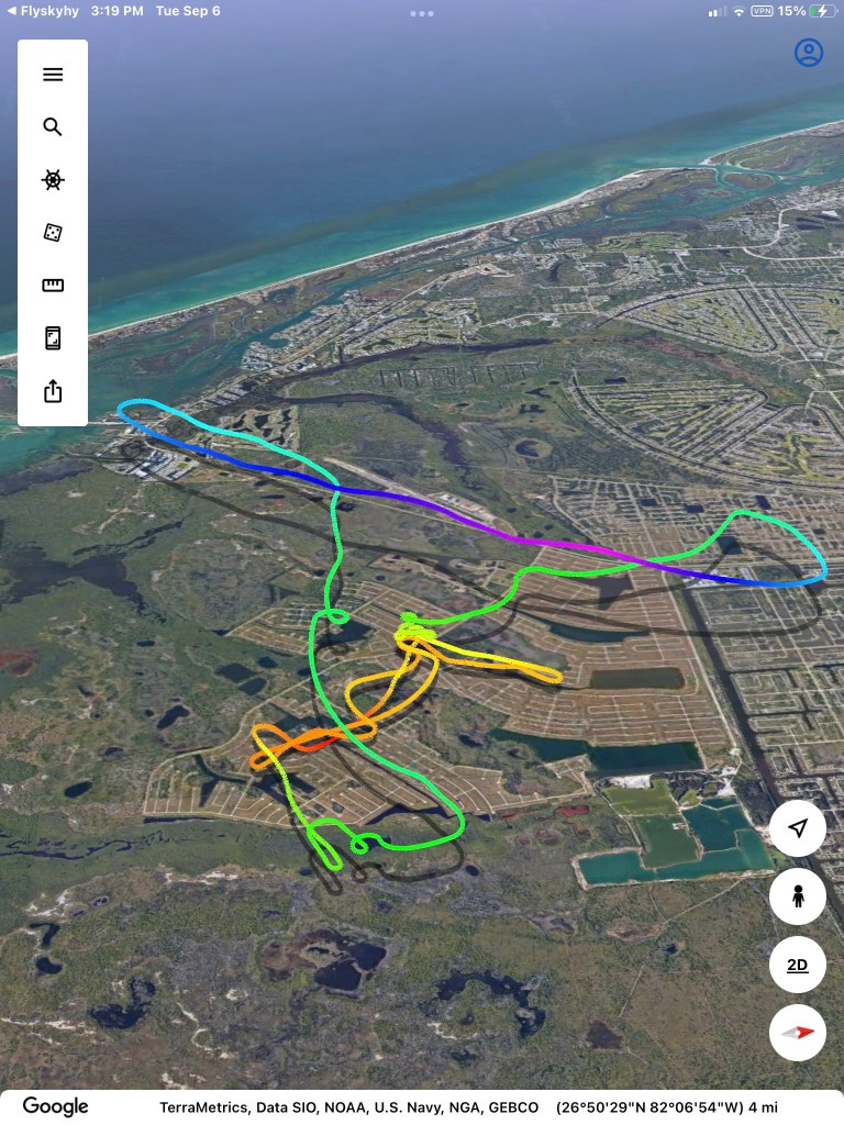 Proud of myself. Instead of trying a tricky crosswind launch, I checked my map and discovered that 1/4 mile up the road it turned right into the wind. Looking back I could have moved the set-up 200 ft. farther up so that the trees could have funneled the airflow. Could have caused mechanical rotor at the wingtips. Not sure….