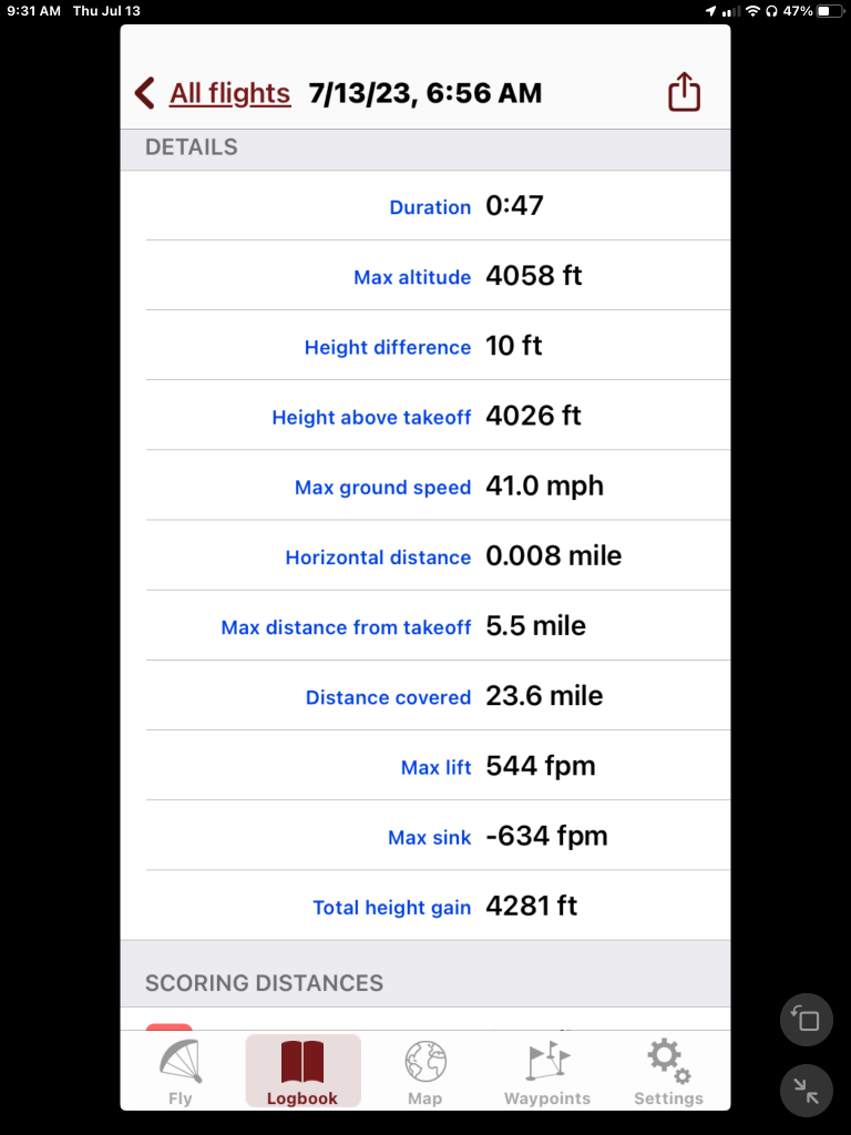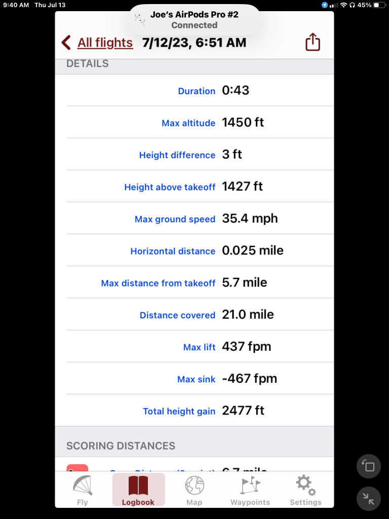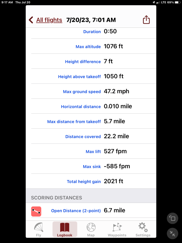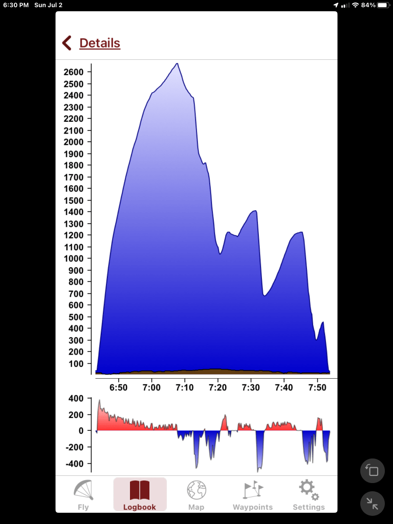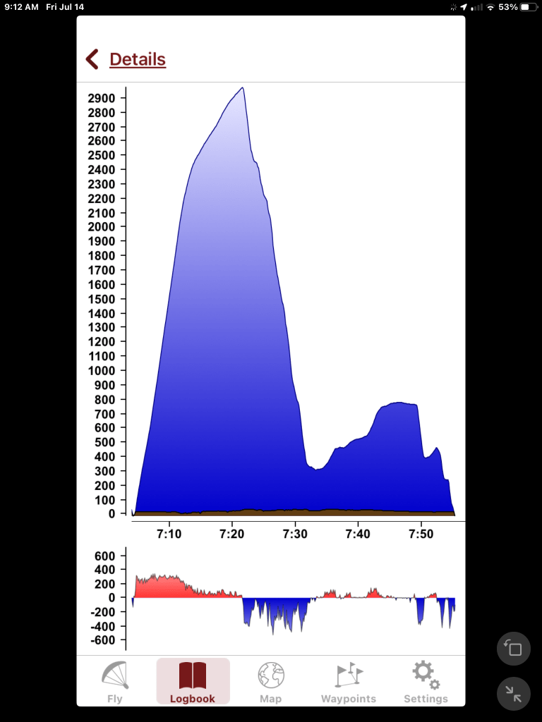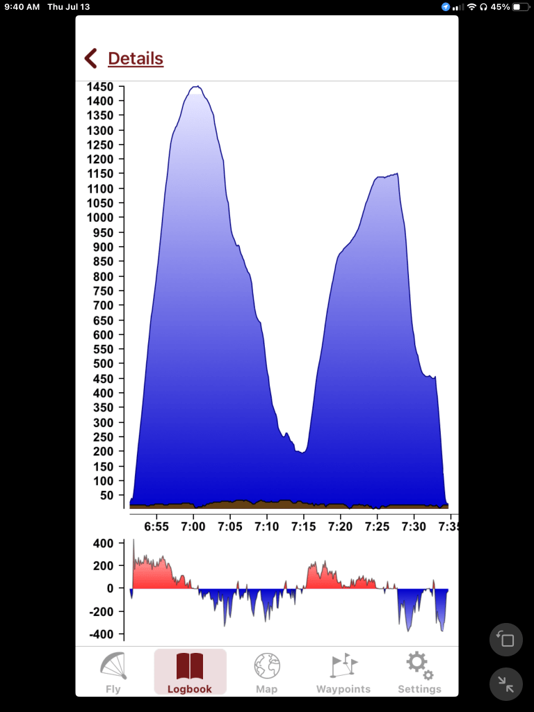 Three Flights , no drama. All mostly smooth except the middle one which had some bumps with very sharp edges. This morning the breeze was light from the north but the first two were light from the south.