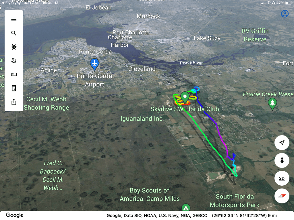 I used the prop torque to spiral up to 2500 ft. Where I trimmed for straight flight and headed over to the sand quarry climbing at 60 to 100 ft /minute.