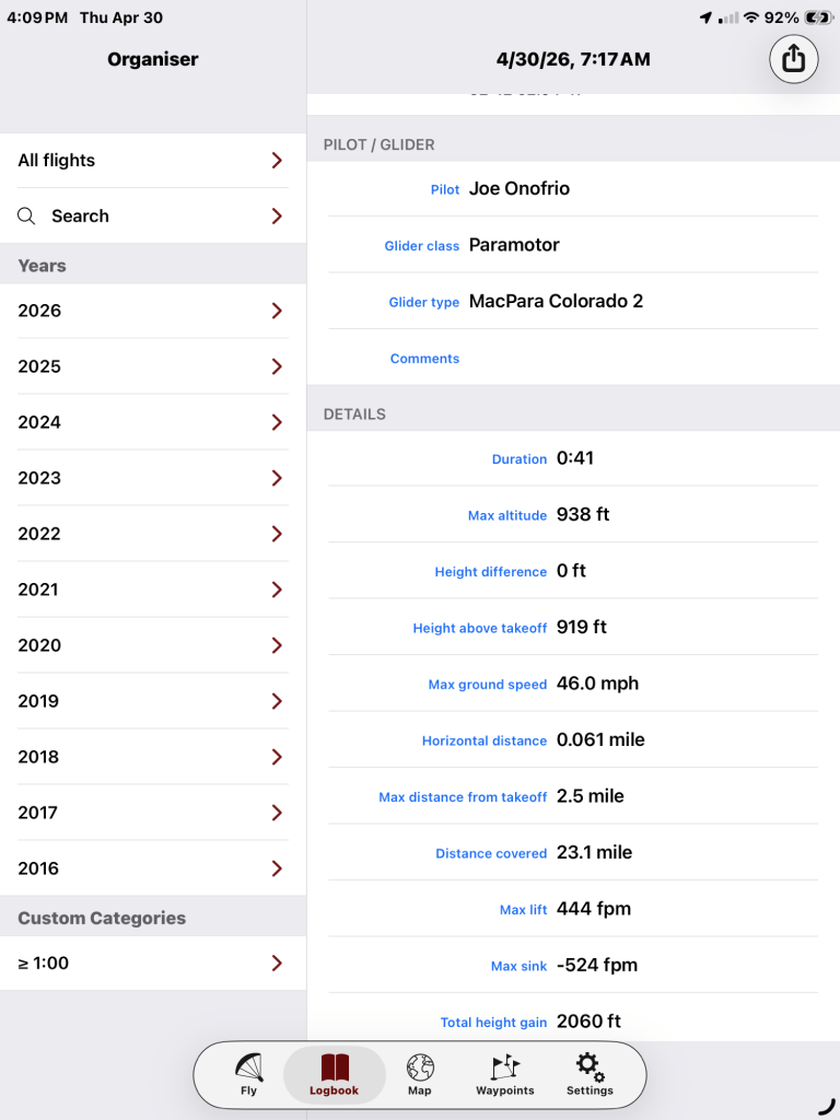 Flight #1319 Today I pulled the trimmers in 3/4 of an inch for a no wind launch and it came up beautifully.