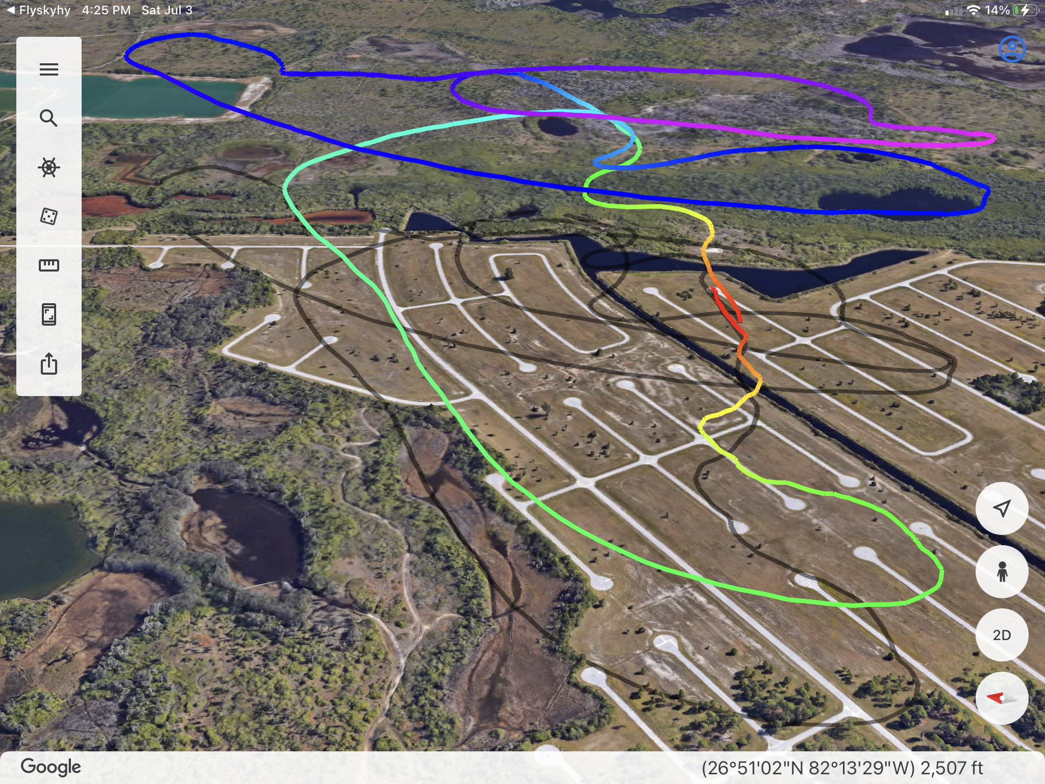 After the blowout at Lake Wales it was a pleasure to get in a nice long flight. I followed a triangle course from Shell Creek to Arcadia Airport and back via Red Neck Yacht Club and Tracks and trails.