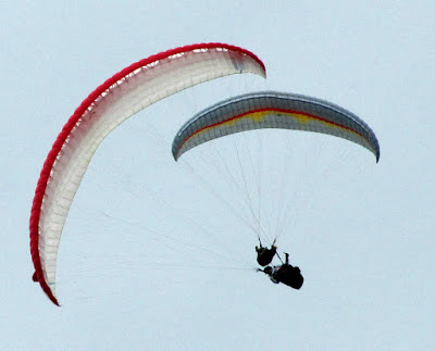 Back at Chips house I layed out the Eden III and did a serious inspection, the damage was much worse than I thought. Seven lines need to be replaced and there is a 1/4 puncture by the left wingtip. While I was doing that Chip fixed a wonderful breakfast and debated whether to fly, run or bike. Terrible dilemma… but the conditions were perfect and the sky won. I sat on the deck and sipped coffee while he hiked up and got in three flight over the next several hours. My thoughts kept drifting back to my girls, I wondered what they were doing and if they were thinking of their “Ol Man”.
