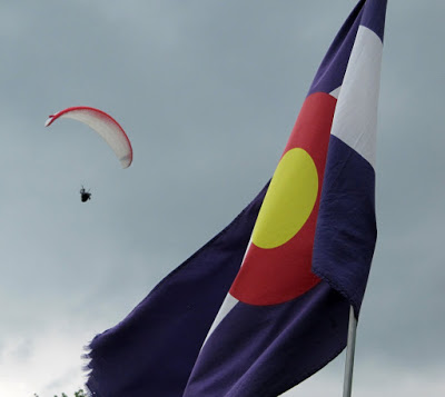 This place is the opposite if Vance Brand, the run outs are bouncy slow challenges. The trike is trying to power through the weeds and the wing is bouncing above the trike. I can only imagine the lousy air flow over the wing. Invariably I get airborn too soon at too low an air speed. It is more like lurching into the air. Looking back, I should have aborted but once up, the air was smooth as butter. There was a fresh breeze from the West making it turbulent over by Red Rocks so I spent 90 minutes playing over the golf courses and Bear Creek Park. Not much activity this early… just me and the coyotes