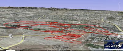 The air was good with a little mixing going on. I watched a kid practicing motocross for a while and as the breeze built I played with crabbing the wing across the field. When the sun set behind the foothills I turned on the forward strobe. It would be great if I could find a way to turn them both on while in flight. I boated around the field for 20 minutes and when the breeze started to shift to a Westerly decided to land.