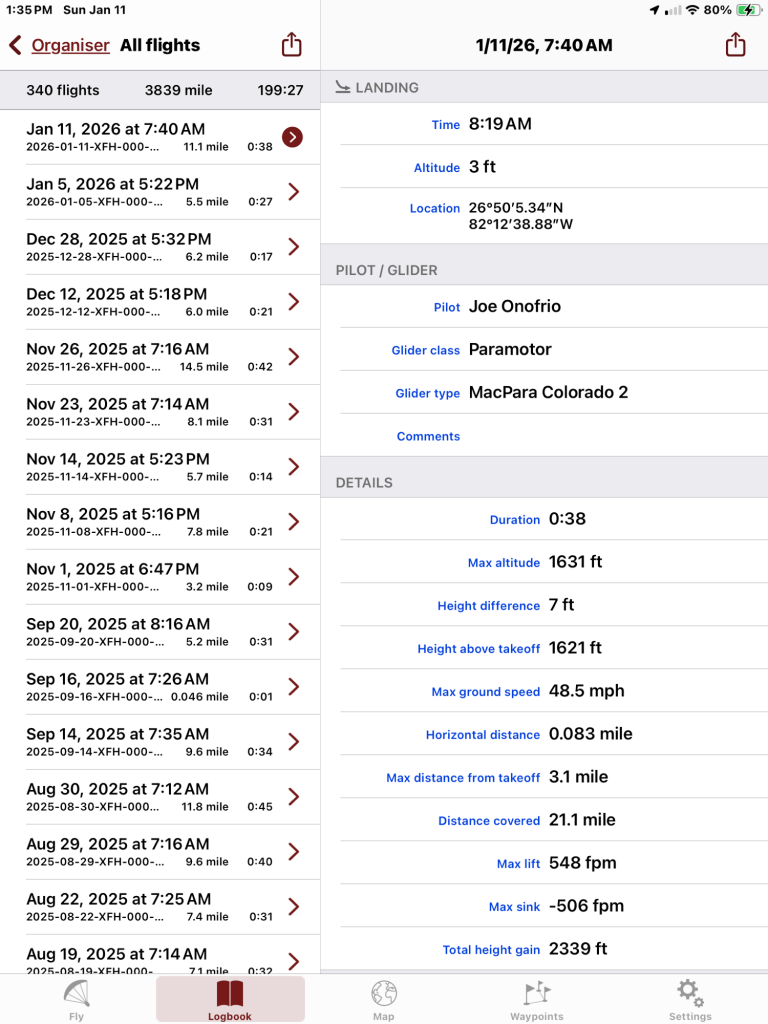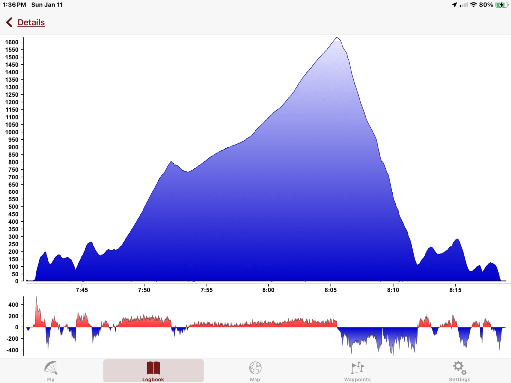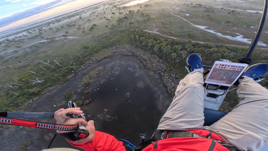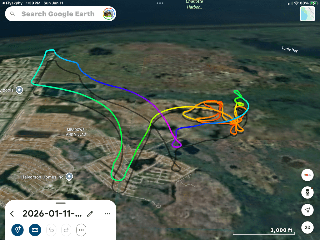 Good flight except that the wing wasn’t exactly centered and I had to make some fast and dramatic inputs to inflate and center the wing. I’m thinking the narrow opening in the nose of the glider make it easy for the prop wash to inflate one side or the other if not dead on centered.