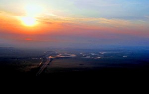 Then… Eric was gone to get his class together and I was alone on the foggy field. I taxied the Kangook at speed to get a feel for how it accelerated and around the corner to see what my options were for turning to gain altitude, just in case I couldn’t clear the pine trees at the get go. Ten minutes after Eric had pulled out, I was set-up and ready to launch. I waited another five, soaking in the quiet and thanking the gods. Life is good.