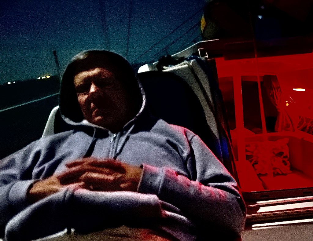 When we set off, there was good wind on the beam but when we rounded Punta Gorda it was dead astern and decreasing. Sailing wing on wing, we ran 3.5 knots VMG. About 2300 hours the Fish and game officers came alongside, inquiring if we had seen a small (22ft) sailboat that had gone missing. We had not and that was pretty much the last boat we saw until dawn.