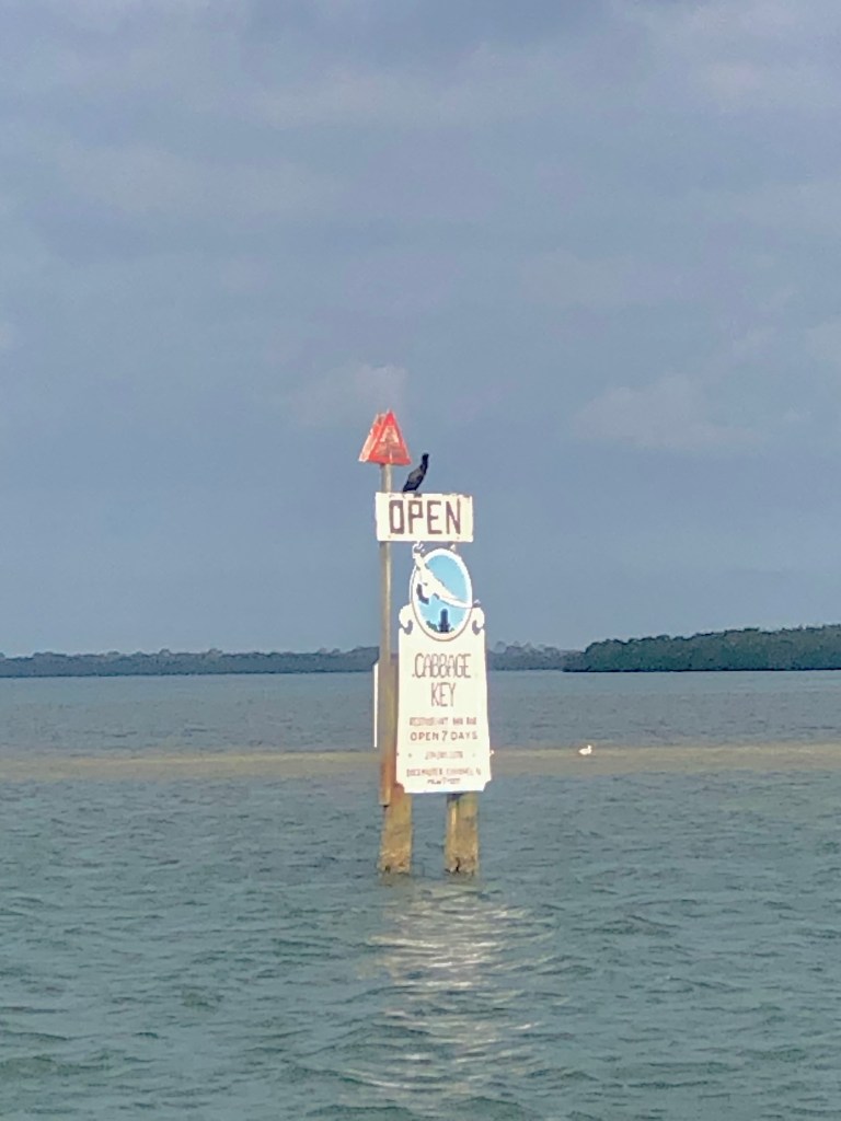 We left Cabbage Key a little after noon. I was concerned about a strong wind pinning us from behind and there was a confusion of boats jockeying to get our slip. Fortunately, the dock hand controlled our bow with the painter and Glory backed out clean. I’d considered a shorter route to the harbor that had been suggested by Navonics but after the fiasco with the Sanibel Causeway, I opted to retrace our course back toward Pelican Bay and not turn up until we were well above the shallows.