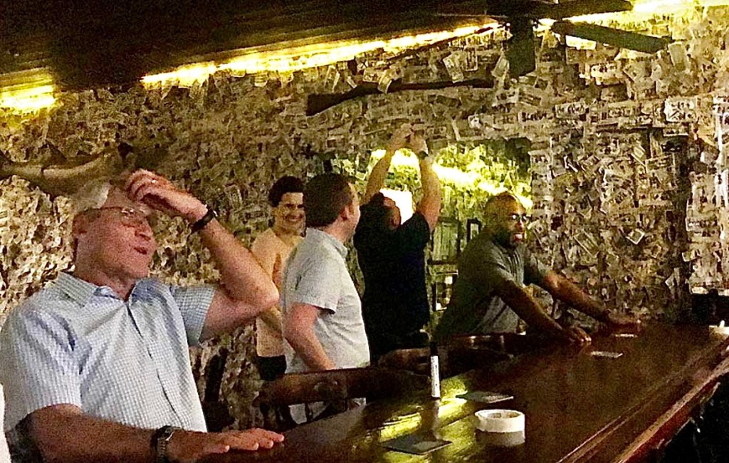 While we were exploring the resort, the tour boats arrived. In thirty minutes it went from abandoned to packed. Every table was filled and the guests were borrowing pens to write their name on dollar bills to pin to the walls of the dining room. I’m glad we waited, Glen had scored an excellent table overlooking the Marina. I had smoked salmon and Glenn had their signature Stone Crab.