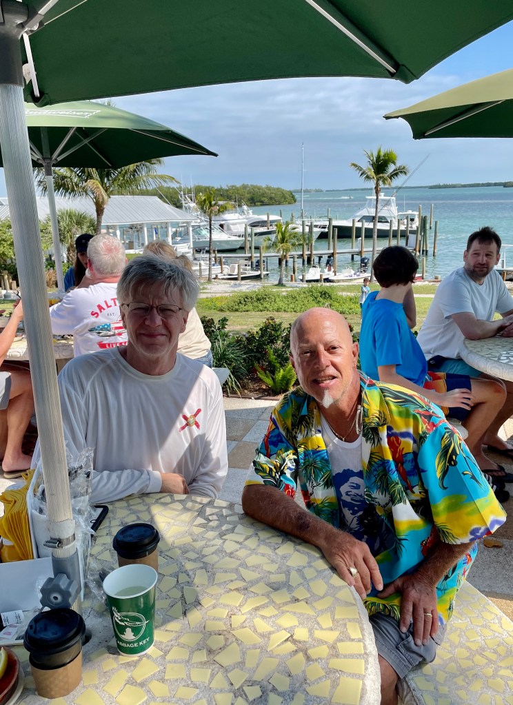 In the morning, we hauled the dingy , raised anchor and headed back to Cabbage Key. The plan was to stop at the resort, have breakfast and proceed to Matlacha and Burt’s Bar. When we got there I was delighted to see that we had beaten the crowd. There were plenty of slips available and a dock hand to catch us. We secured the boat and walked to the restaurant where Jimmy Buffet had been inspired to write, “Cheeseburgers in Paradise”.